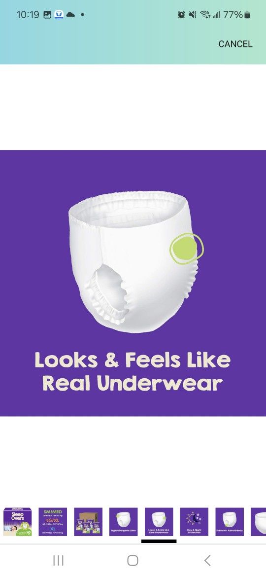 1 / 61 / 6Buy & SellSleepOvers by Cuties, Bedwetting Underwear, 60 CountSleepOvers by Cuties, Bedwetting Underwear, 60 Count$20SleepOvers by Cuties, Bedwetting Underwear for Girls and Boys, Small/Medium 38-65 lbs, 60 CountWHERE TO MEETCheck LocationView MapSELLERverifiedHinaEast Northport962 reviews0 chats·0 favorites·0 viewsSEND CHAT TO SELLERHi Hina! I’m interested in your listing.Hi Hina! I’m interested in your listing.Get the Karrot app to chatSign In to chat