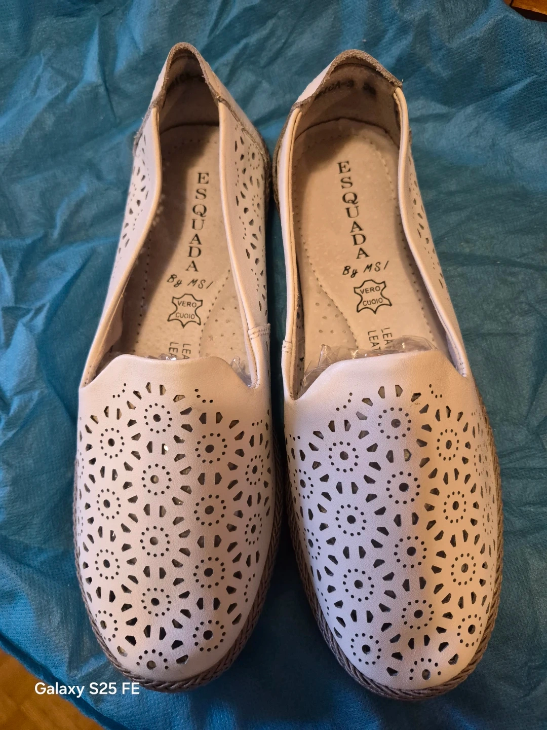 These Esquada loafers are made of white leather with intricate laser-cut detailing. They feature a comfortable design with a true leather lining. Perfect for casual wear or a stylish accent to an outfit!