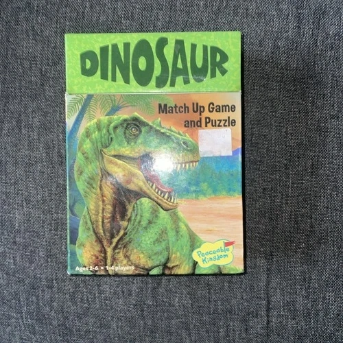 This is a delightful children's game featuring 24 dinosaur cards by Peaceable Kingdom. Designed for solo play, it's perfect for young children aged 3-7 to enjoy matching and memory-building fun. The colorful and engaging design makes learning about dinosaurs a captivating experience, stimulating cognitive development and introducing a love for nature and animals.