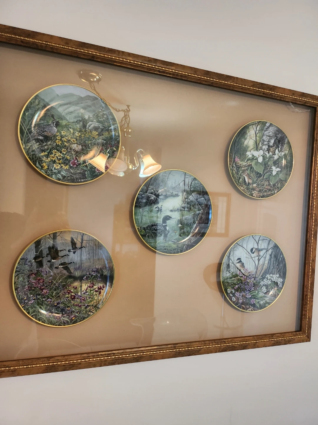 Gerda Neubacher Kaiser porcelain Unique art set of 5 framed collectible decorative plates in Mint condition ! Call Tomi 514 571 8606