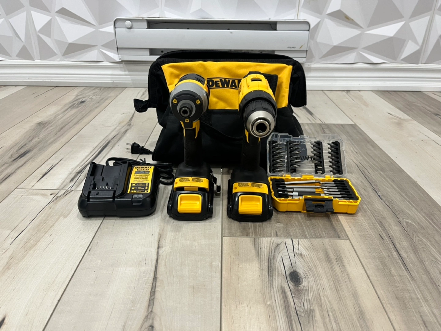 Excellent condition. Includes two cordless tools, charger, extra batteries, and a variety of drill bits. Includes original storage kit. Great for home or professional use.