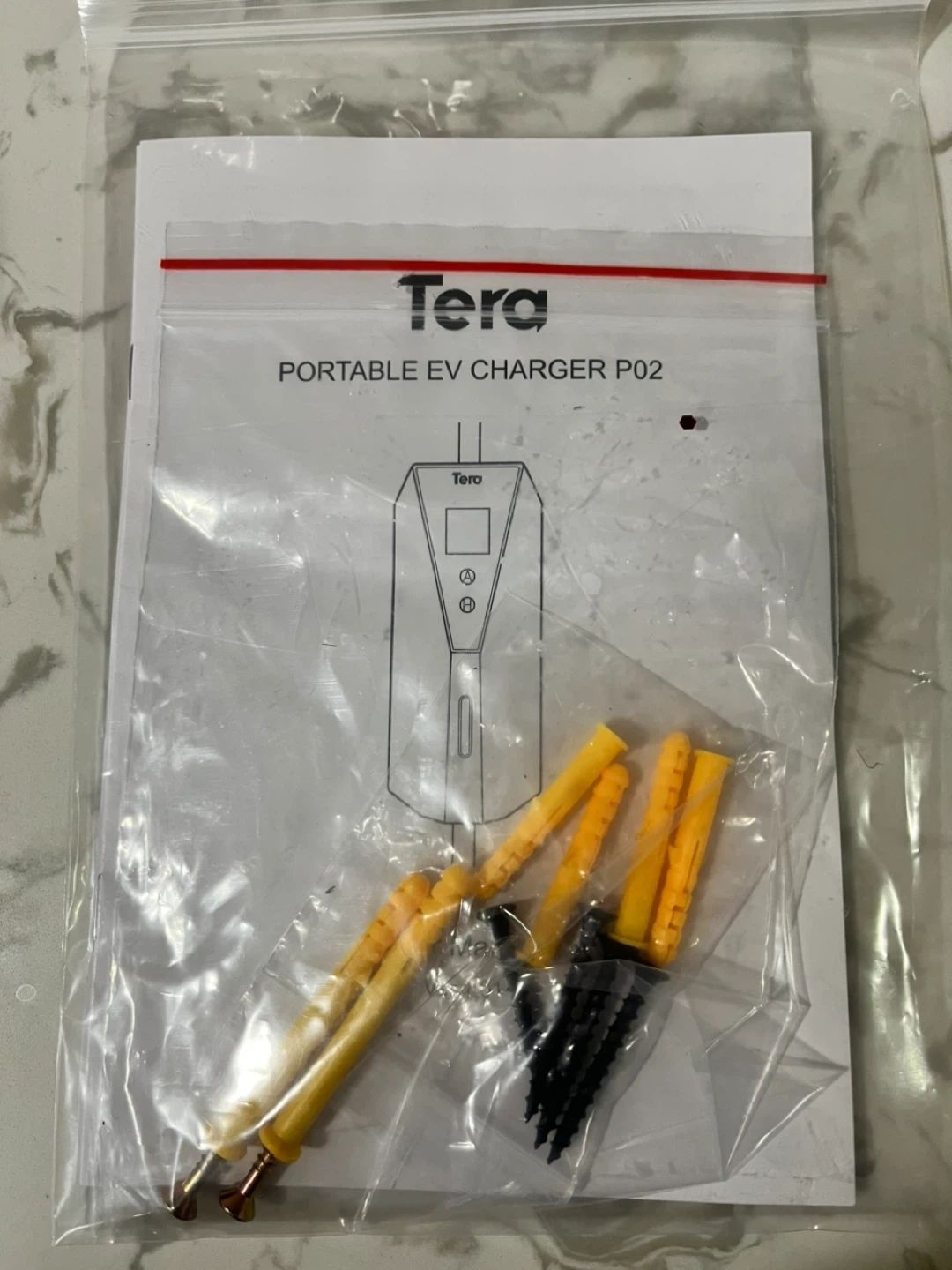 Selling a Tera Portable EV Charger P02 along with an Aimiler EV Charger. Includes the screws and components pictured in the bag. Specifications include:
