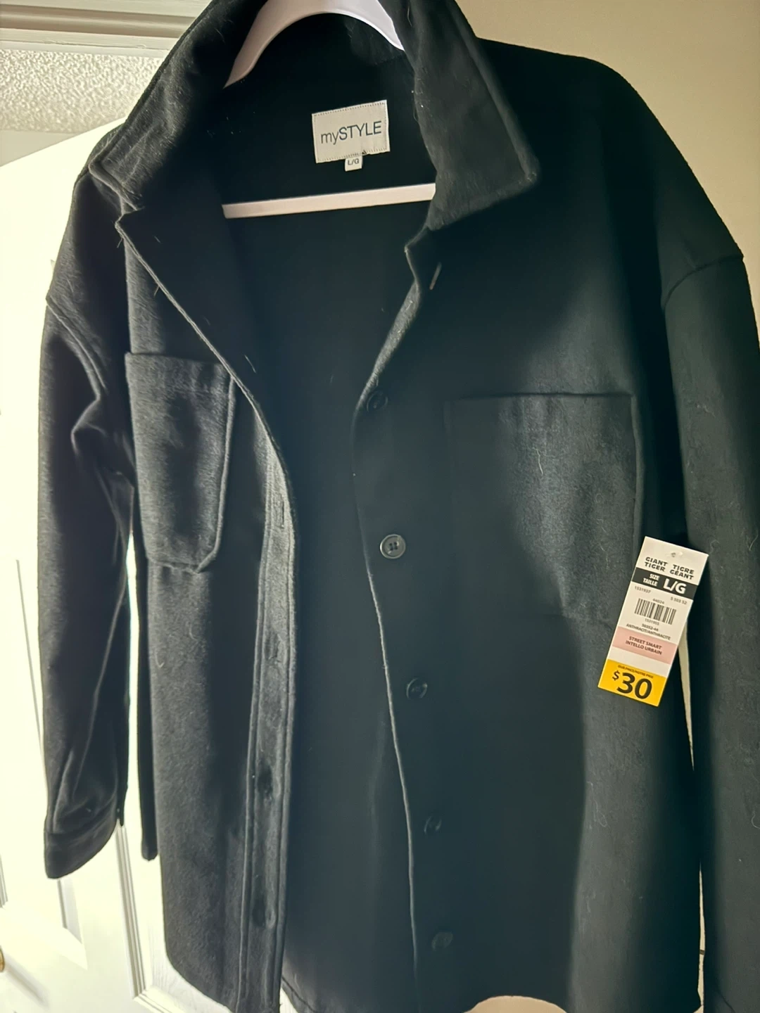 Selling a black shacket from mySTYLE in size Large Originally bought for $30 brand new with tags