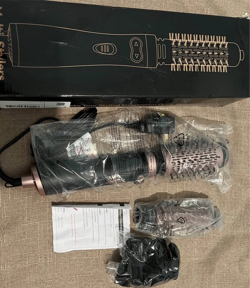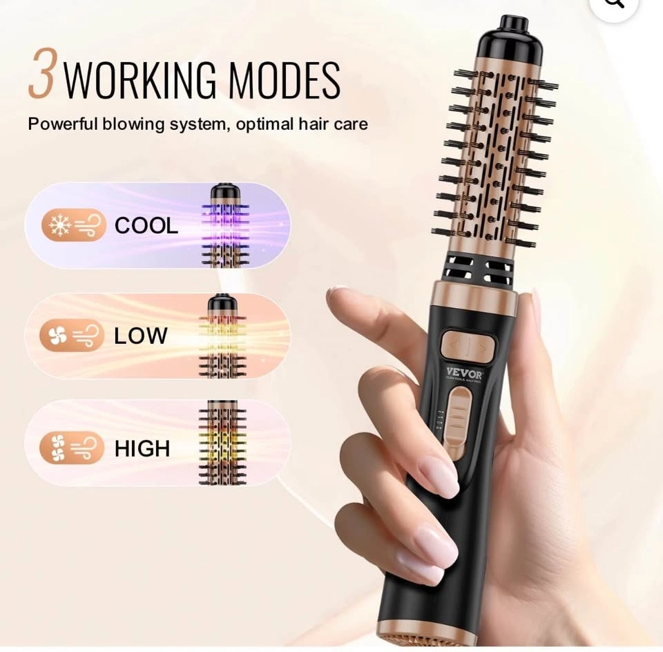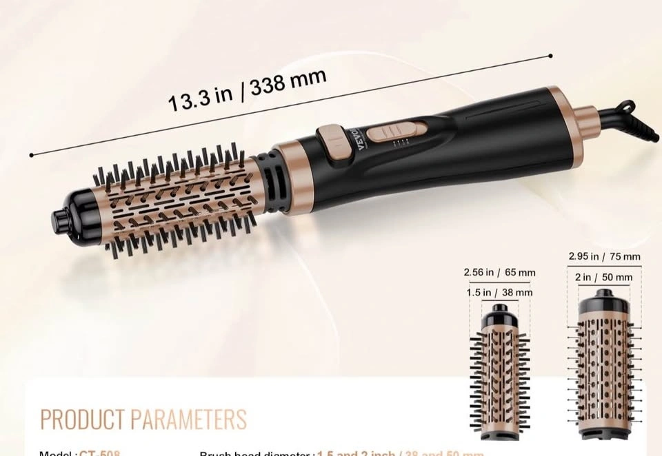 4-in-1 rotating blow dryer brush that can be used as a hair curler, hair dryer, and for smooth and comb hair. It is 900W and styles your hair quickly and efficiently.