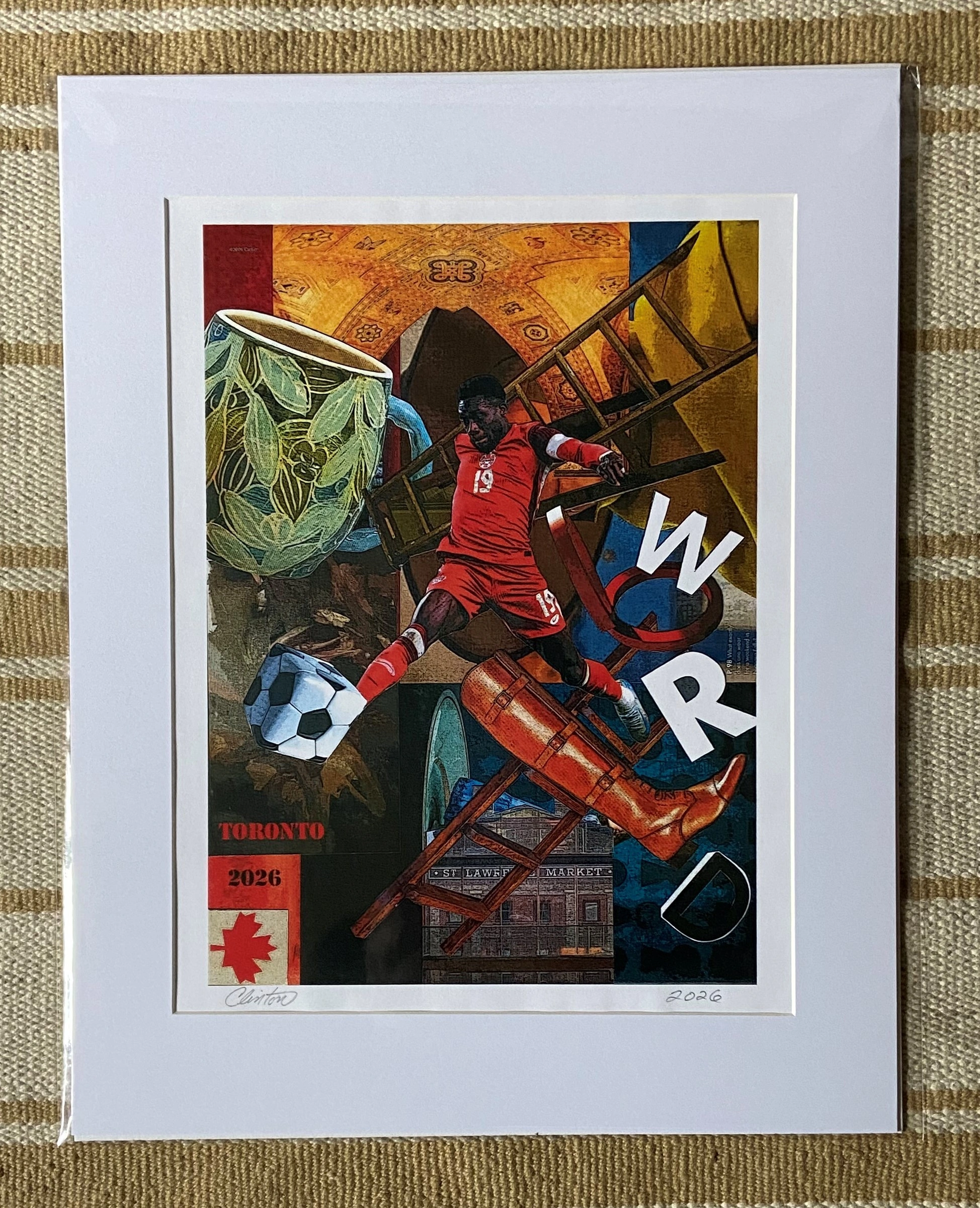 These are original collages using images meticulously cut out from a multitude of magazines, then placed on the bed of a digital scanner. All images are 100% original. The process of creating these works is very labor intensive with each one taking approximately 12 hours to complete. They come signed, matted & sleeved. Why not own one of these World Cup 2026 originals today?