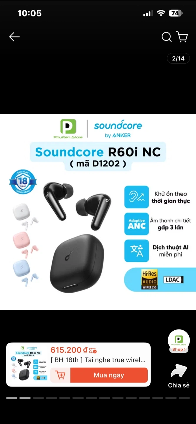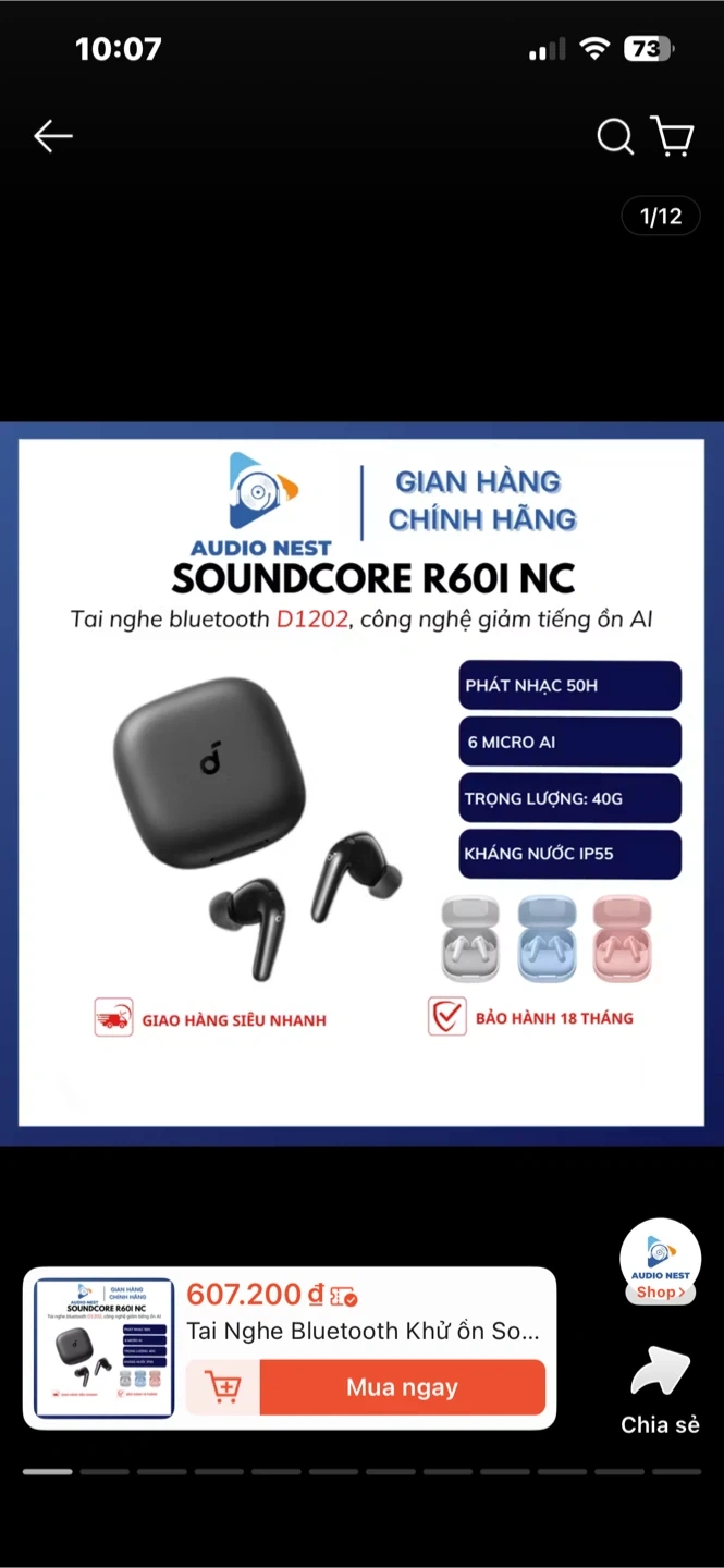 These true wireless earbuds feature noise cancellation with AI. They offer 6 microphones for clear calls and have a playback time of 10 hours with ANC on, or 40 hours with the charging case. Water resistant up to IP55.