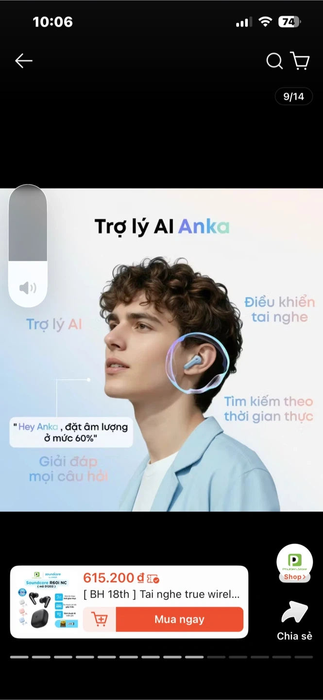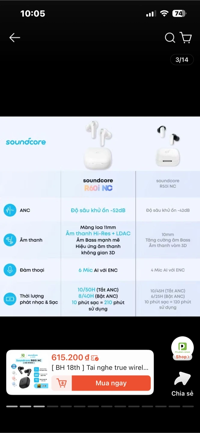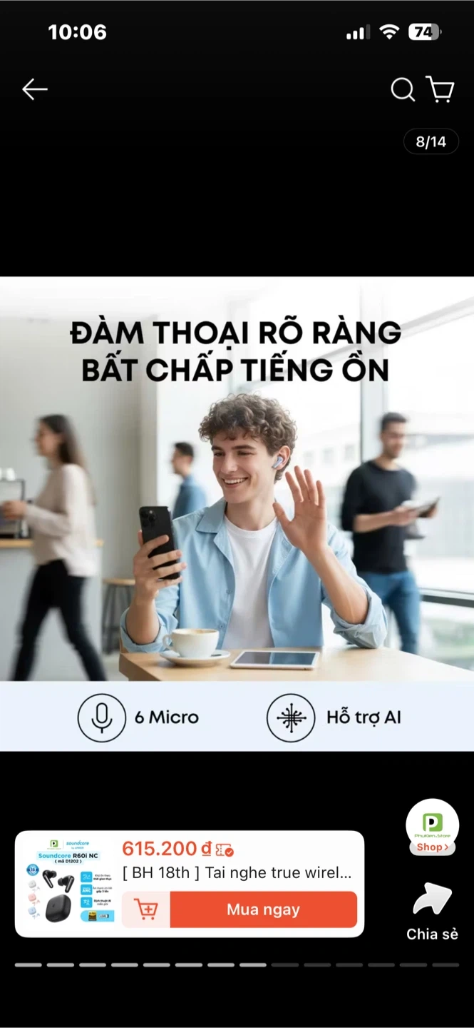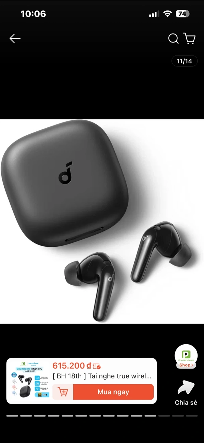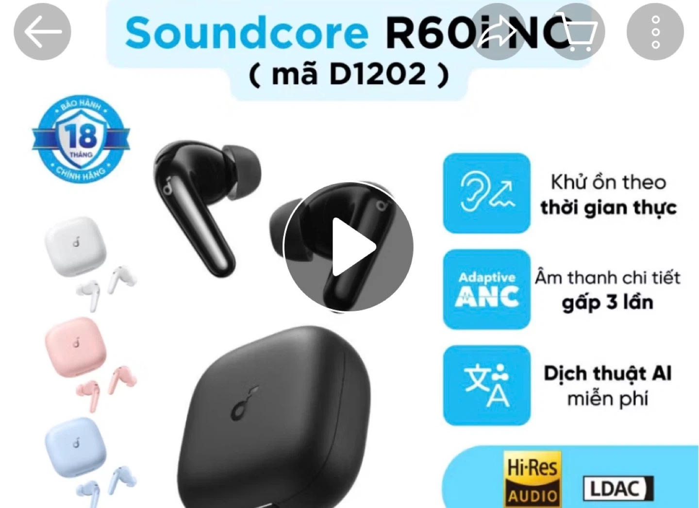 These true wireless earbuds feature noise cancellation with AI. They offer 6 microphones for clear calls and have a playback time of 10 hours with ANC on, or 40 hours with the charging case. Water resistant up to IP55.