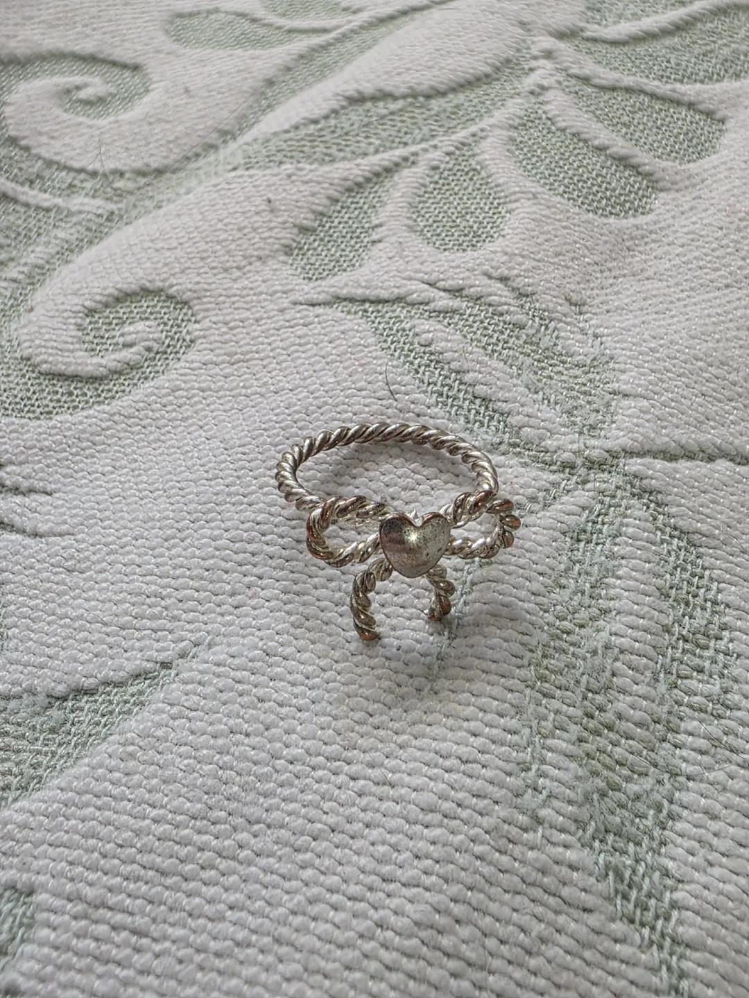 Selling a cute silver ring with a heart and bow design! It's in great condition and would make a lovely addition to any jewelry collection.