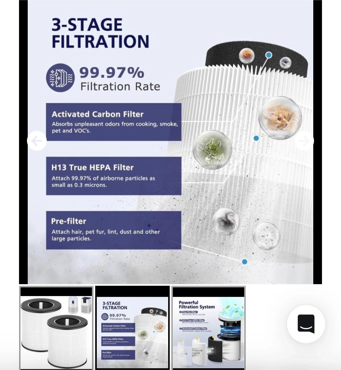 Includes two replacement filters for your air purifier. Features a 3-stage filtration system with a pre-filter, H13 True HEPA filter, and activated carbon filter. Achieves a 99.97% filtration rate!