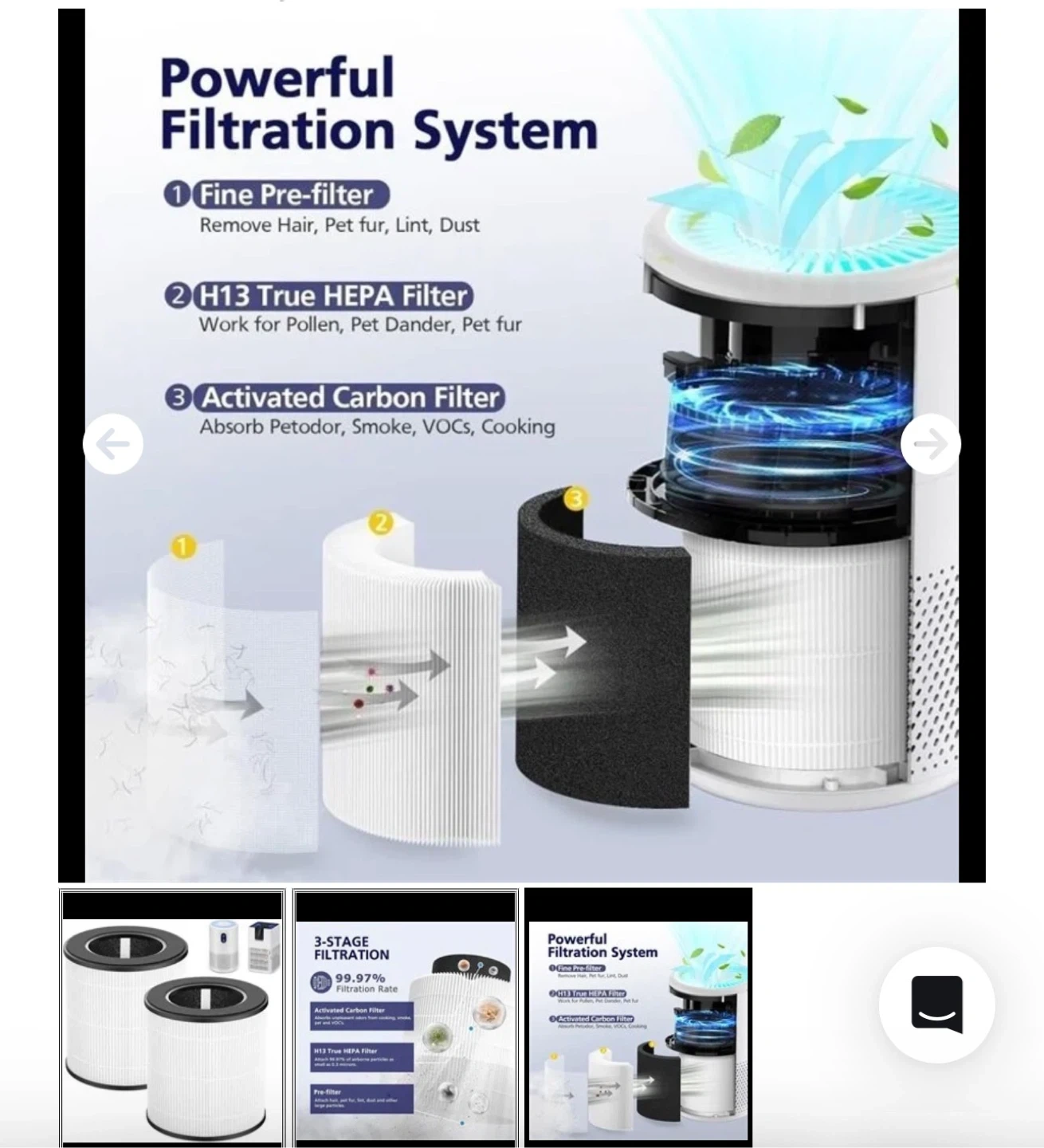 Includes two replacement filters for your air purifier. Features a 3-stage filtration system with a pre-filter, H13 True HEPA filter, and activated carbon filter. Achieves a 99.97% filtration rate!