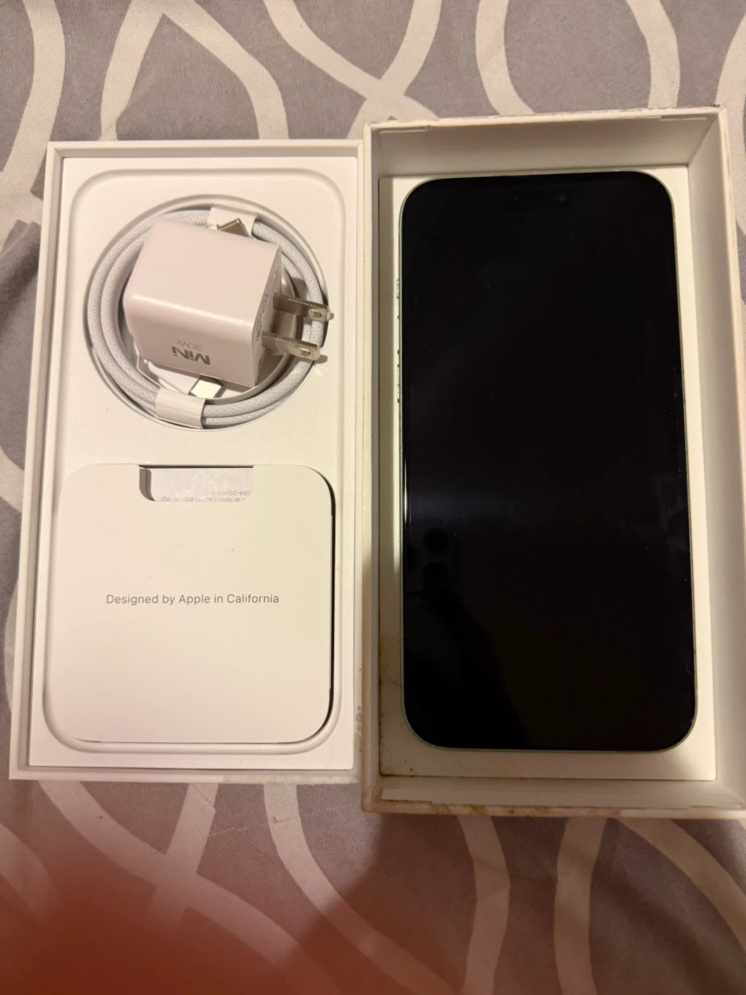 This is an Apple iPhone 15 Plus in green with 256GB of storage. It's a brand new device, still sealed in its original box, and comes with the charging cable and power adapter. It's a great phone for everyday use!