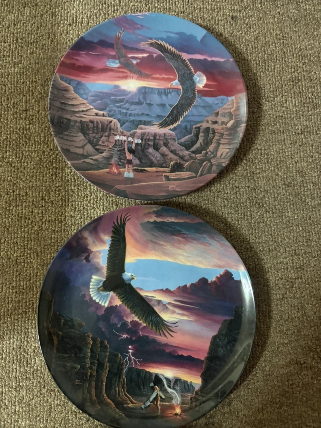 Selling two Knowles China collector plates. One is "Eagle Dance" and the other is "Sharing the Spirit". Both plates are in excellent condition and feature beautiful artwork of eagles in scenic landscapes