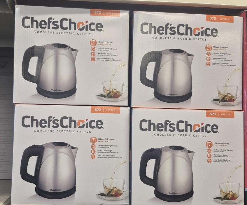 Selling a Chef's Choice cordless electric kettle, model 673. It's in excellent condition, brand new! It features a 1-quart (1.0 liter) capacity, an enclosed heating element, a water level gauge, and auto shut-off/boil dry protection. I need to get rid of this its overstock.