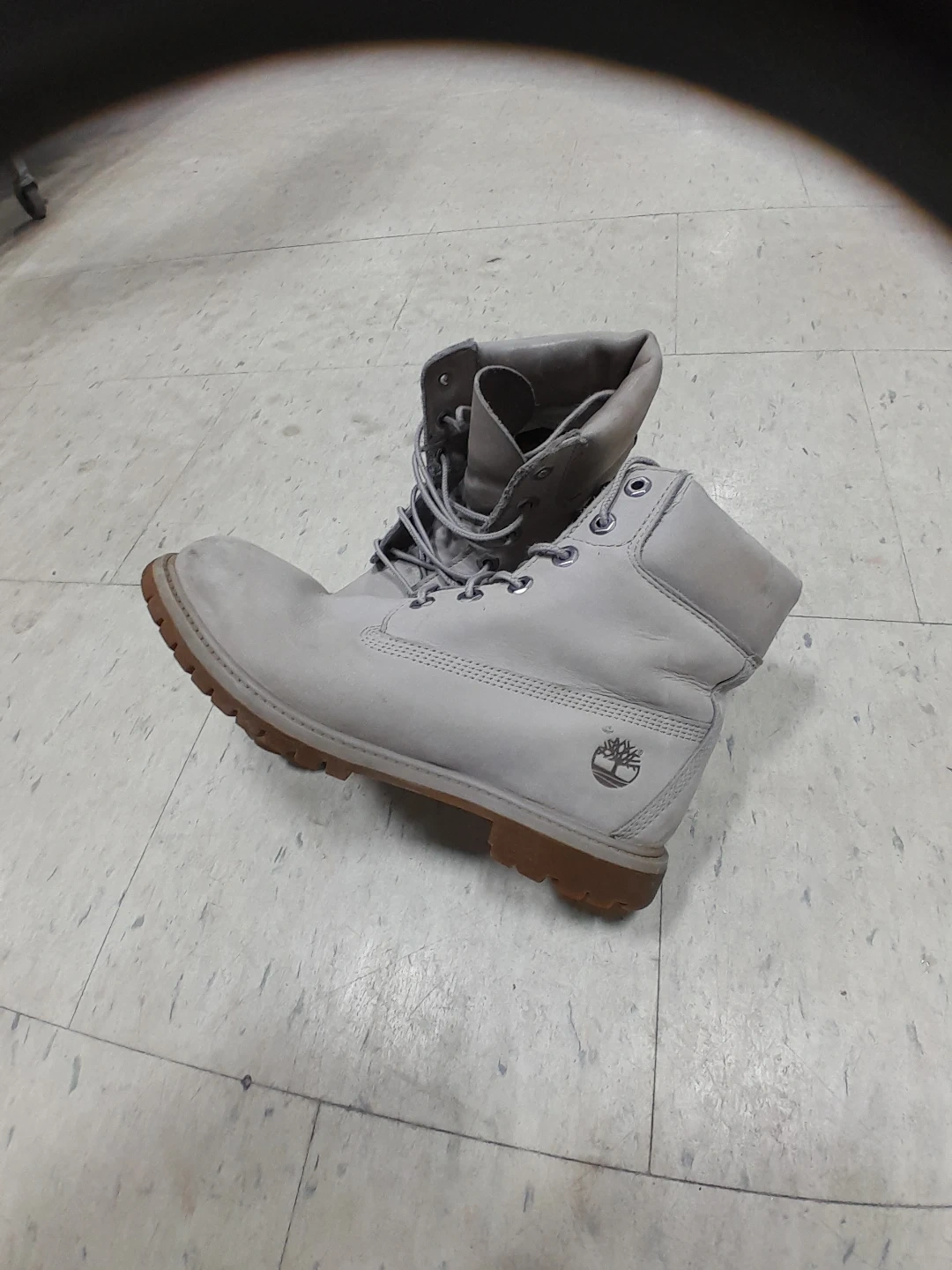 Timberland boots in a light grey colour. They're in great condition and ready for a new home! These are a women's size 9.5