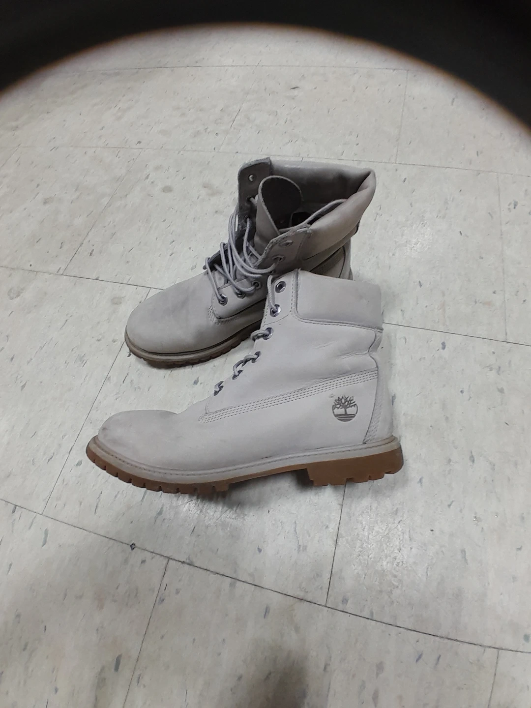 Timberland boots in a light grey colour. They're in great condition and ready for a new home! These are a women's size 9.5