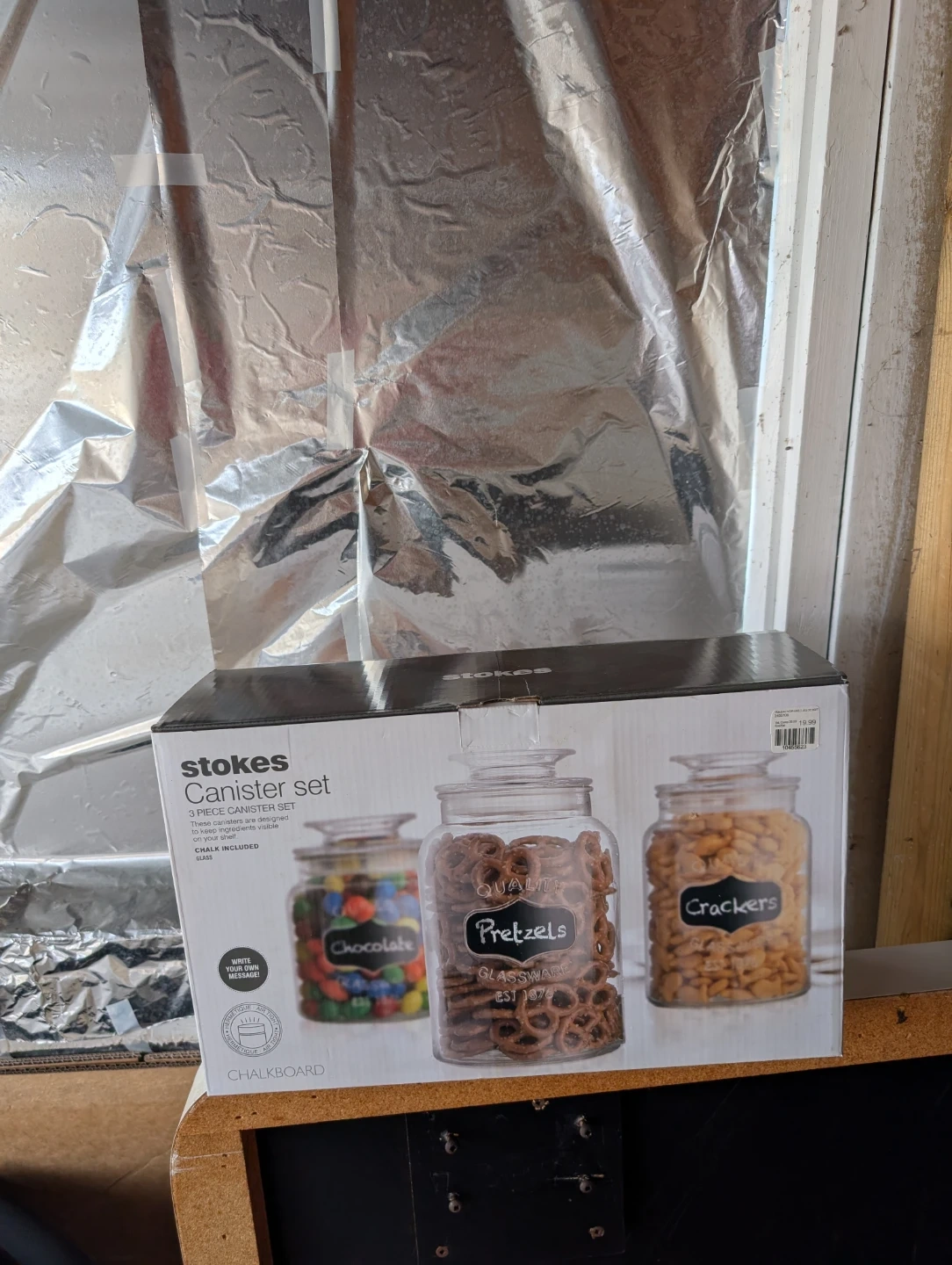 This is a Stokes 3 piece canister set. It's made of glass. These canisters are designed to keep ingredients visible on your shelf. Chalkboard labels are included!