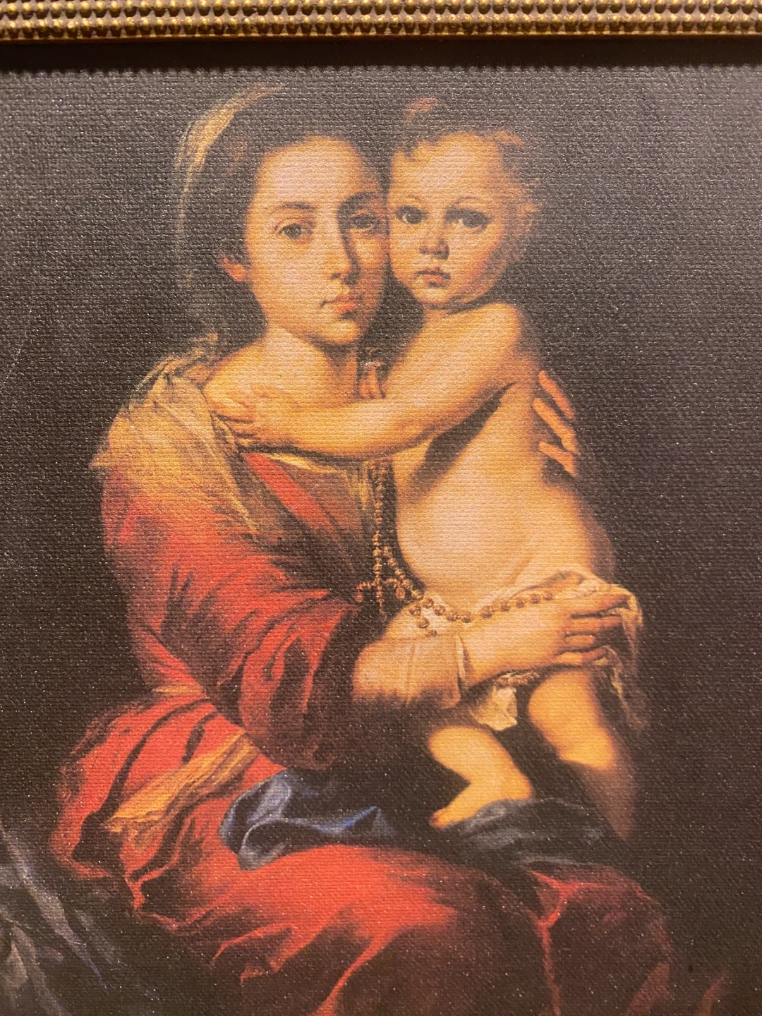 "π" Vintage Madonna and Child Picture, No Glass, Wood Frame