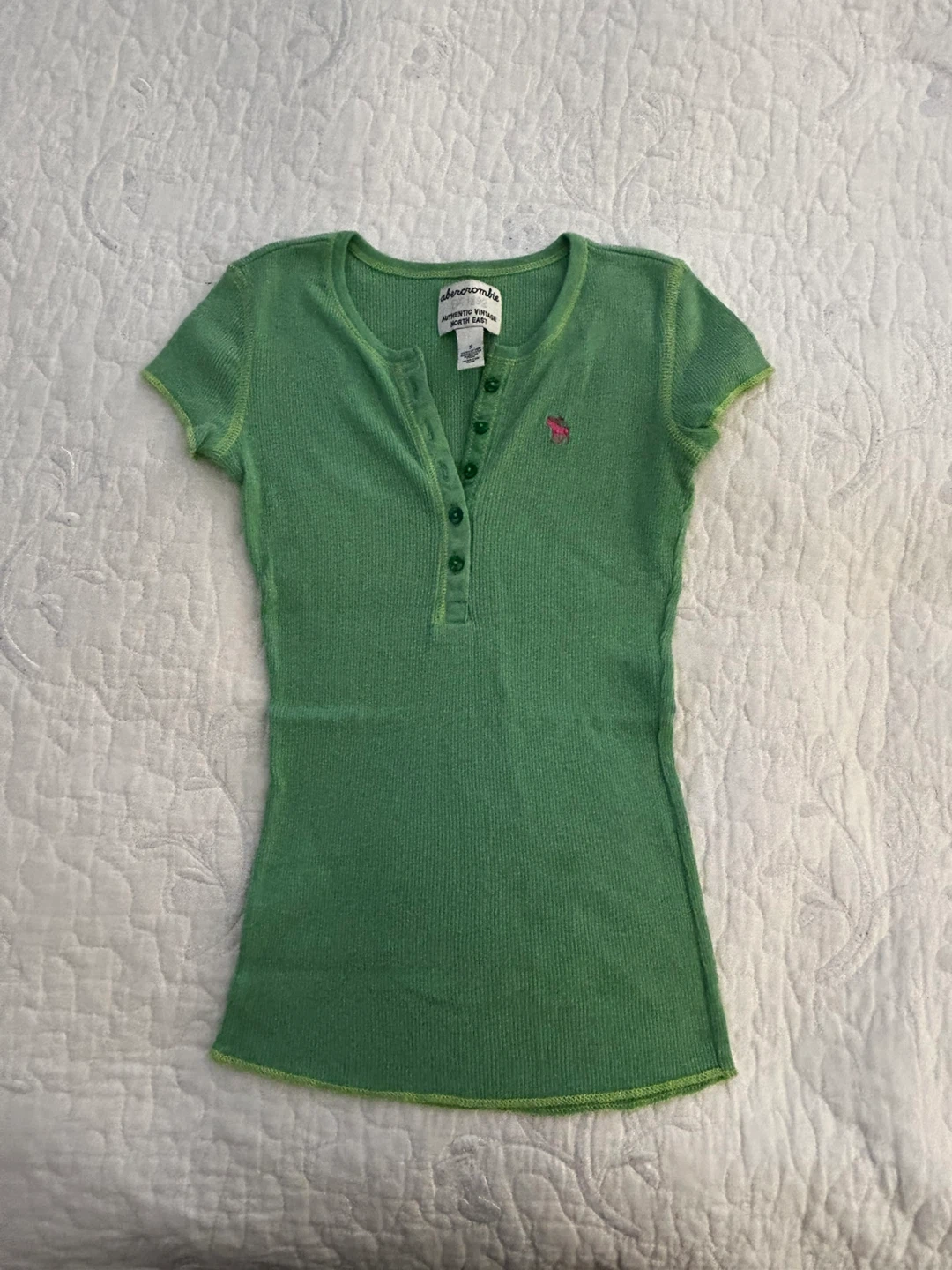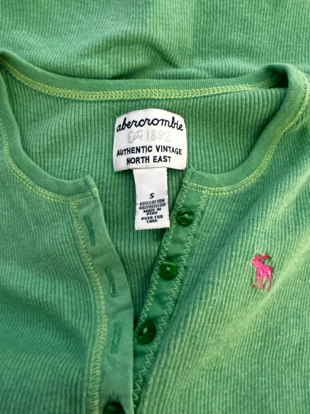 60Selling an Abercrombie & Fitch Authentic Vintage top in a lovely green colour! It's a size small and made of 60% cotton and 40% polyester. Perfect for a casual, vintage look!