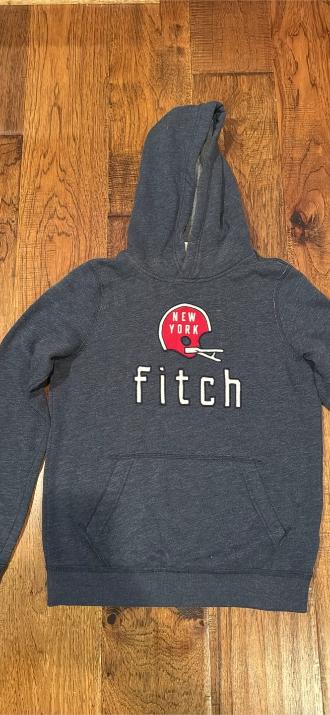 23Cozy Abercrombie & Fitch hoodie in a nice heathered blue-grey colour. Features a New York football helmet design. Perfect for staying warm and casual! Size large kids (14)