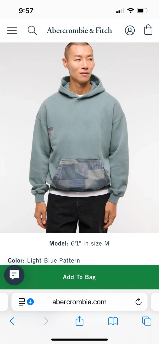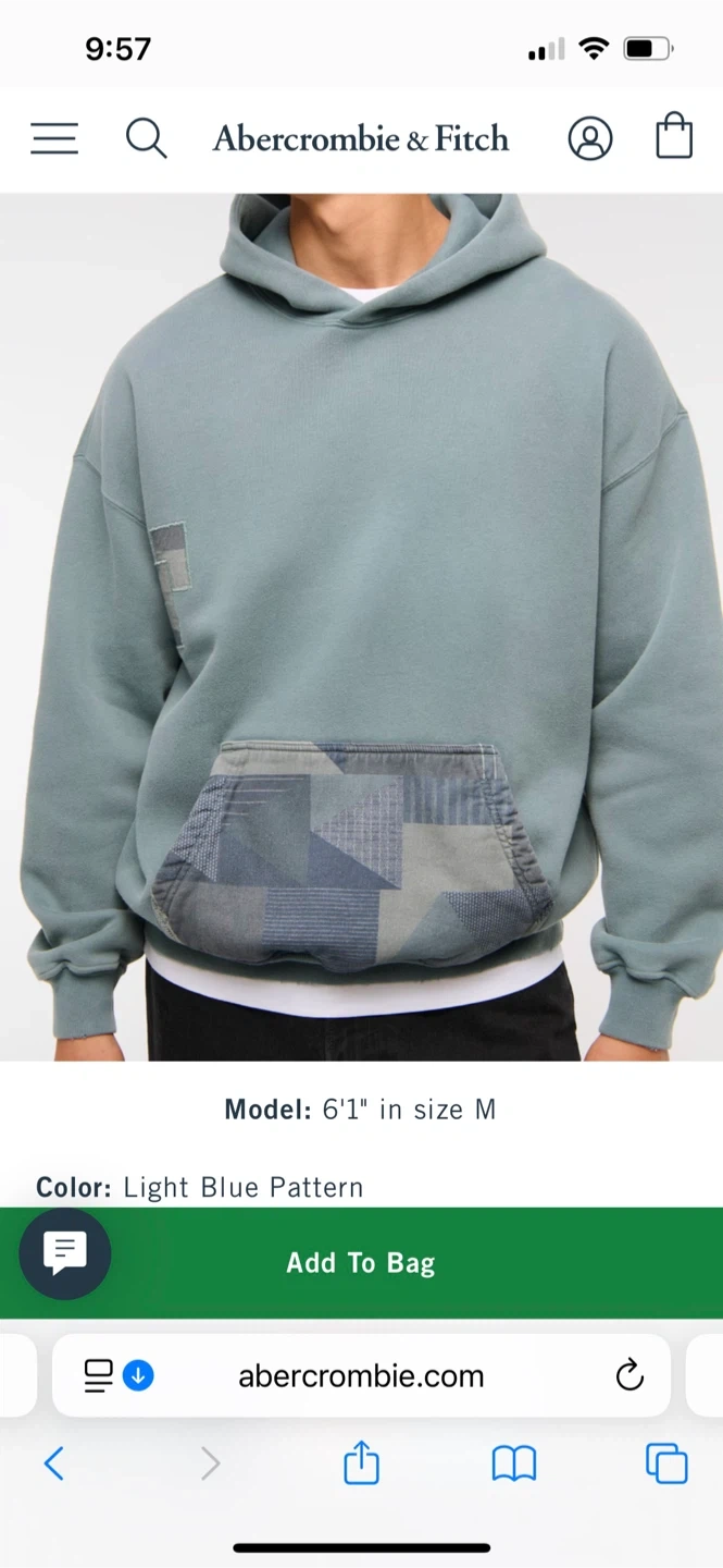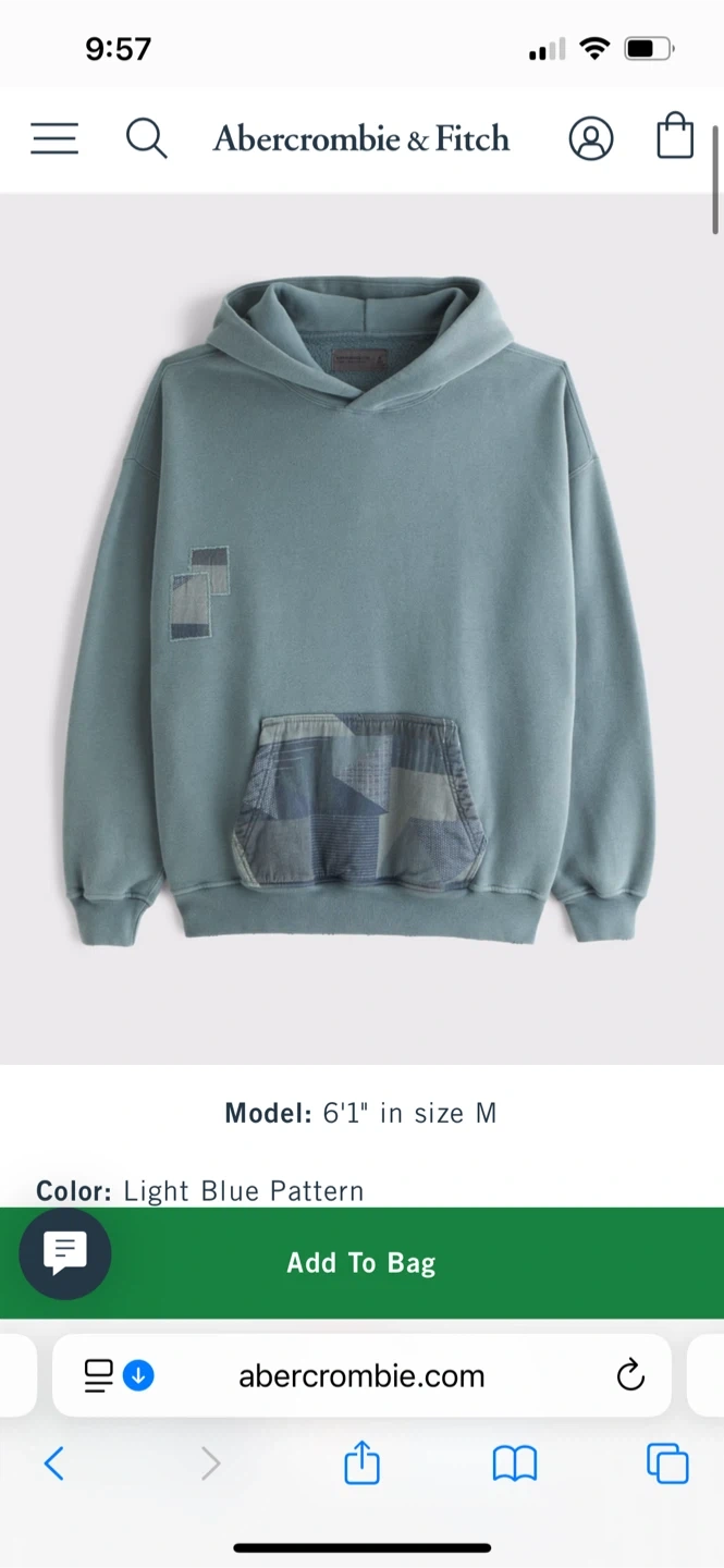 18Cozy Abercrombie & Fitch hoodie in a light blue pattern! It's a size medium and looks great. Perfect for staying warm and stylish on those chilly days. The unique patchwork pocket adds a cool touch too! BRAND NEW WITH TAGS. Retails: $99