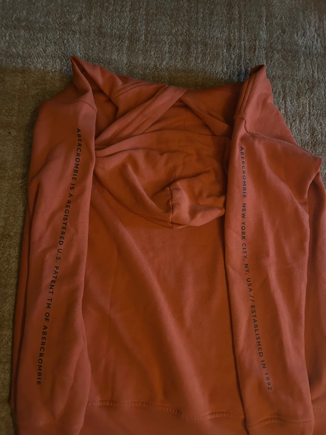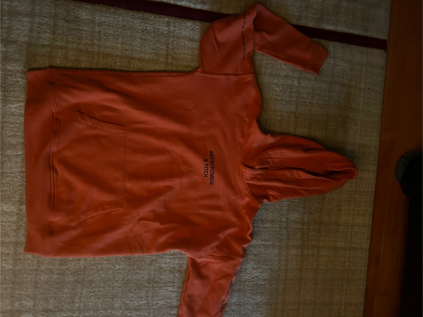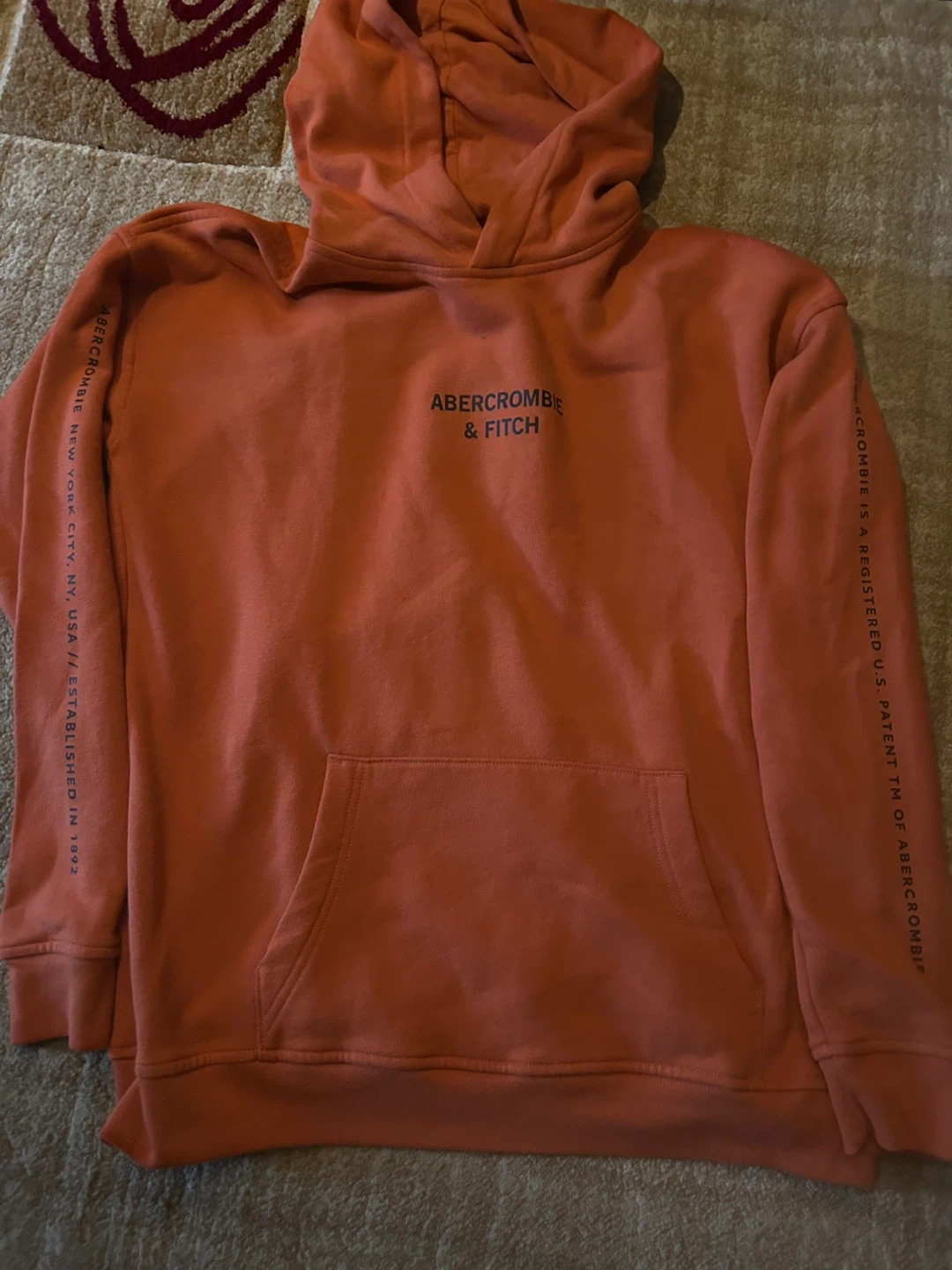 414Abercrombie & Fitch hoodie in a vibrant orange colour! It features the brand's name across the chest and on the sleeves. It's a cozy and stylish piece for casual wear Cash only Pick up Mississauga Square one