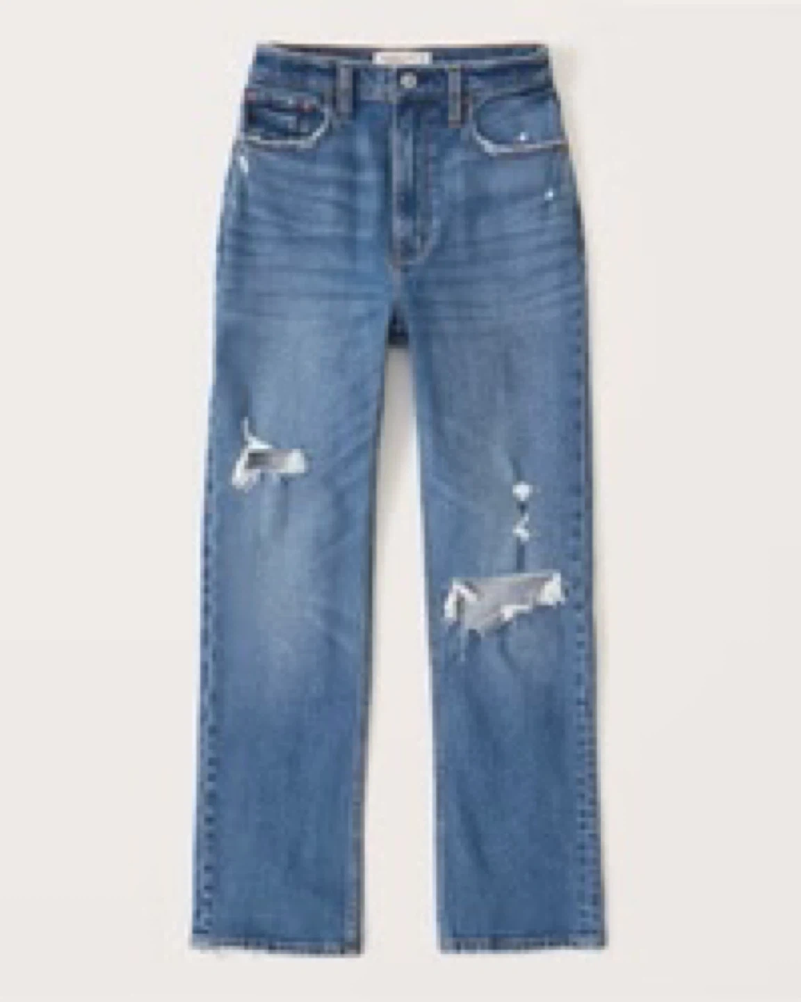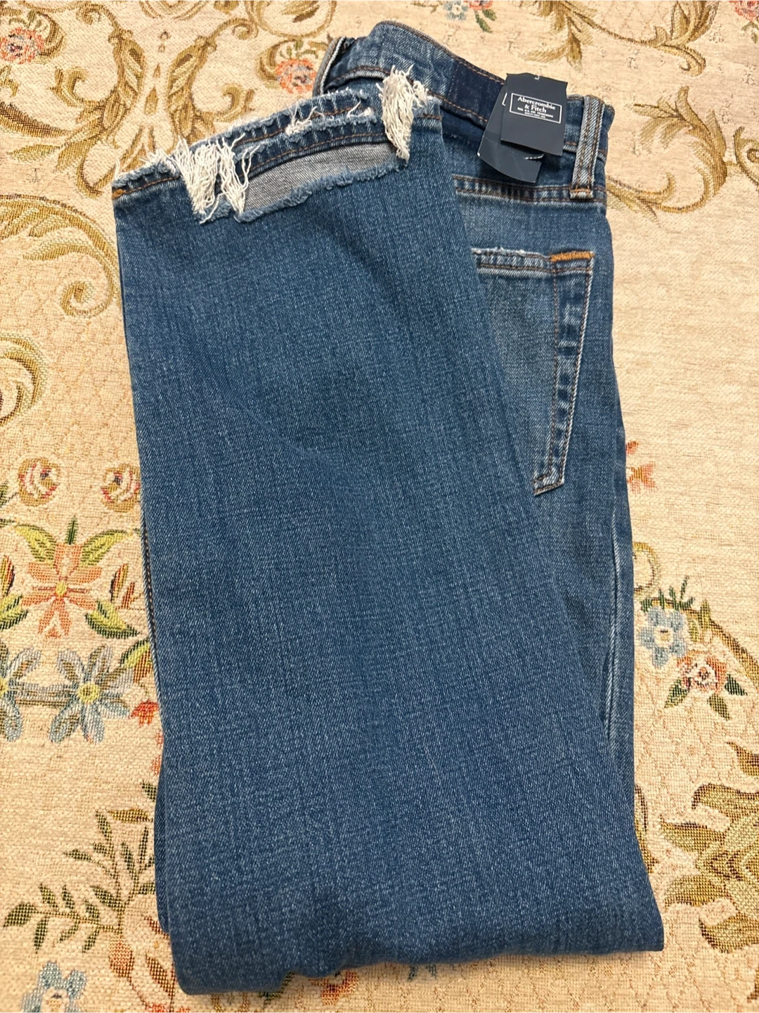 65Selling a pair of Abercrombie & Fitch straight leg jeans! Size 27 short. These jeans have a stylish ripped design at the front. They are brand new with tag on, ordered online recently but not return eligible. Never worn, only tried on once. Selling because these in particular are too short on me (I’m 5’2”).
