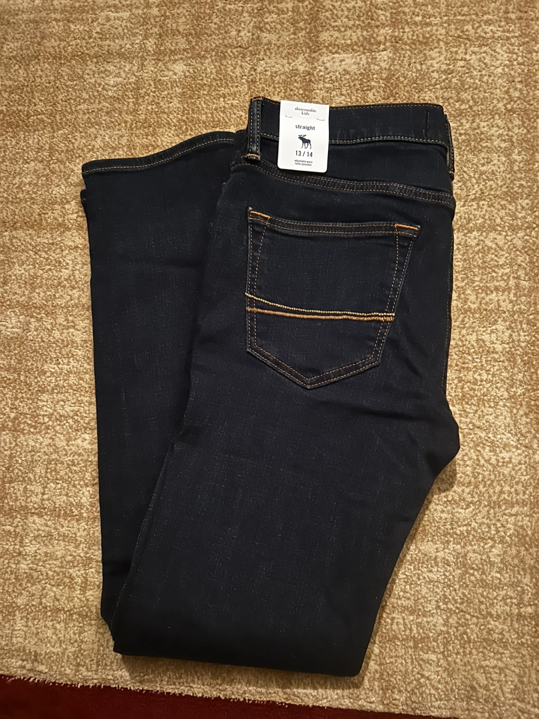 414These Abercrombie Kids straight jeans are brand new with tags! They're a size 13/14 and still have the original tag attached. The tag shows the Canadian price was $54.95 Cash only Pick up Mississauga