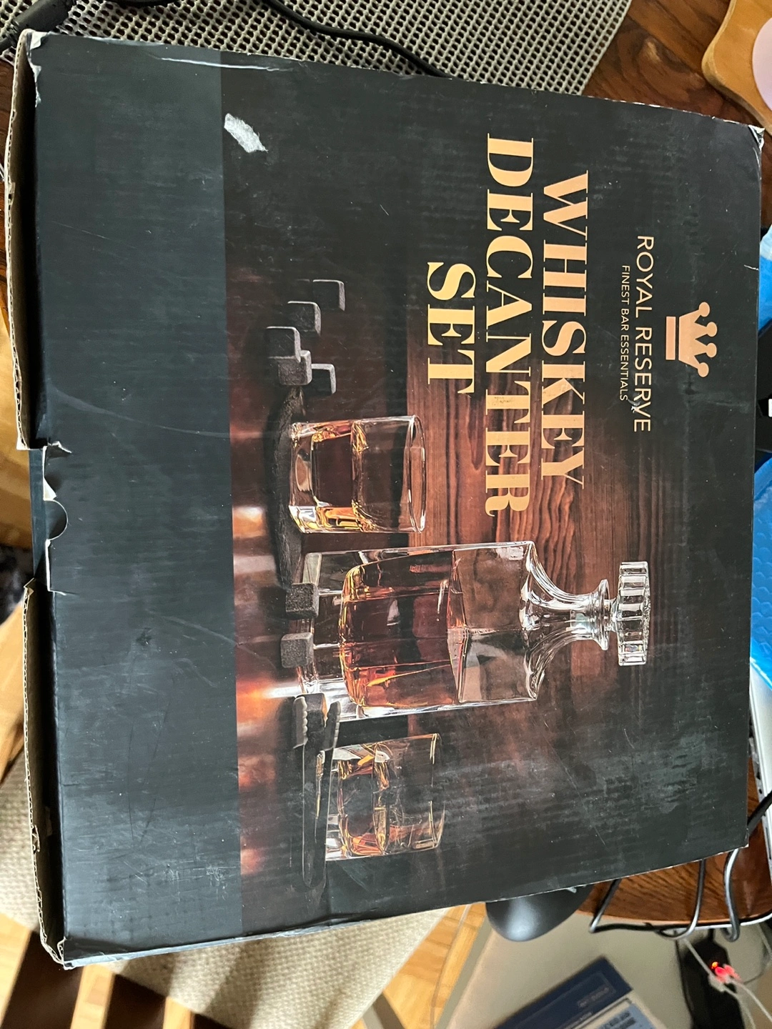 Selling a brand new Royal Reserve Whiskey Decanter Set. It comes complete in its original wood box and includes: