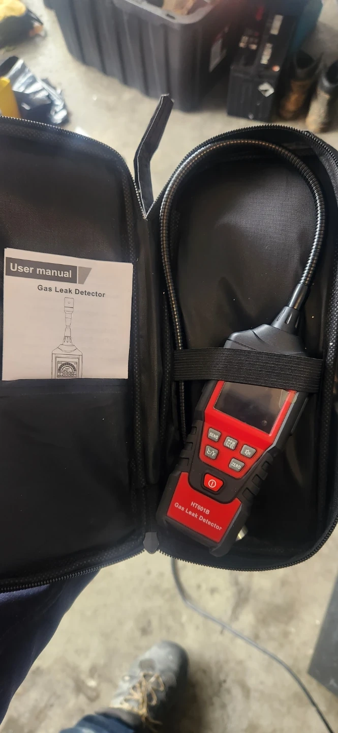 This is a HT601B gas leak detector. It comes with a flexible gooseneck probe and a carrying case. Measures in PPM and %LEL.