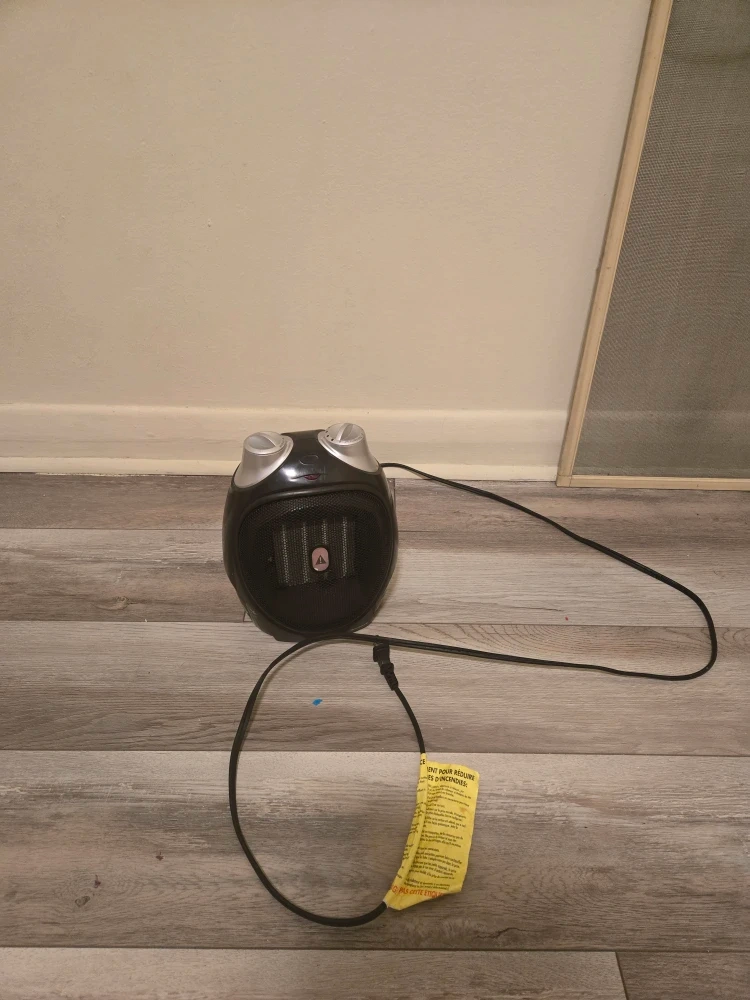 Giving away a portable space heater in black! It's in great condition and perfect for keeping warm during the colder months. It's a compact size, so it won't take up too much space.