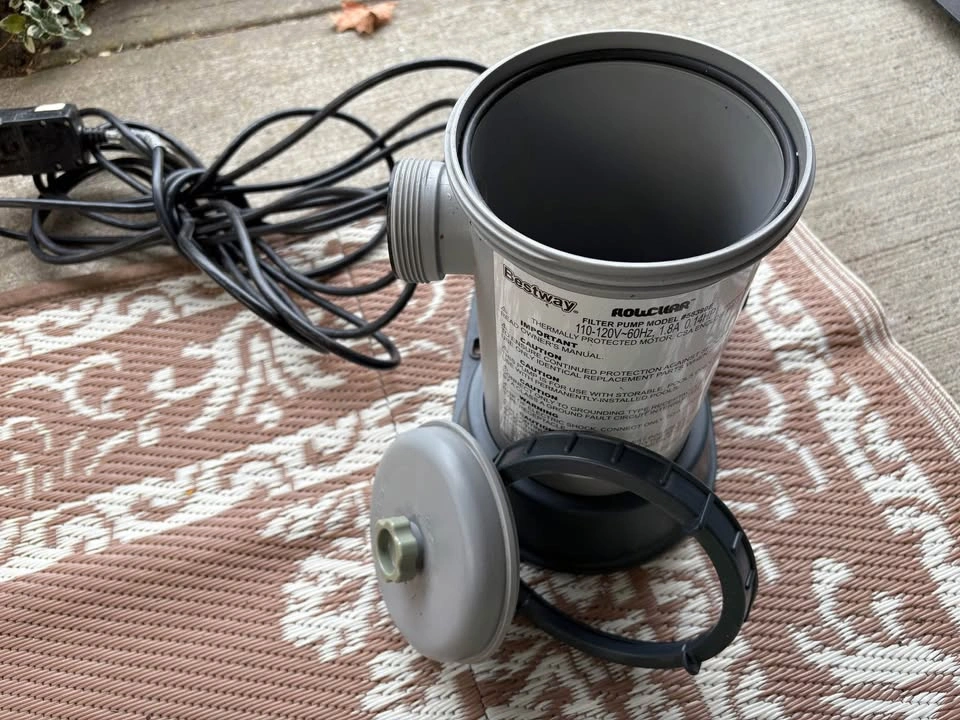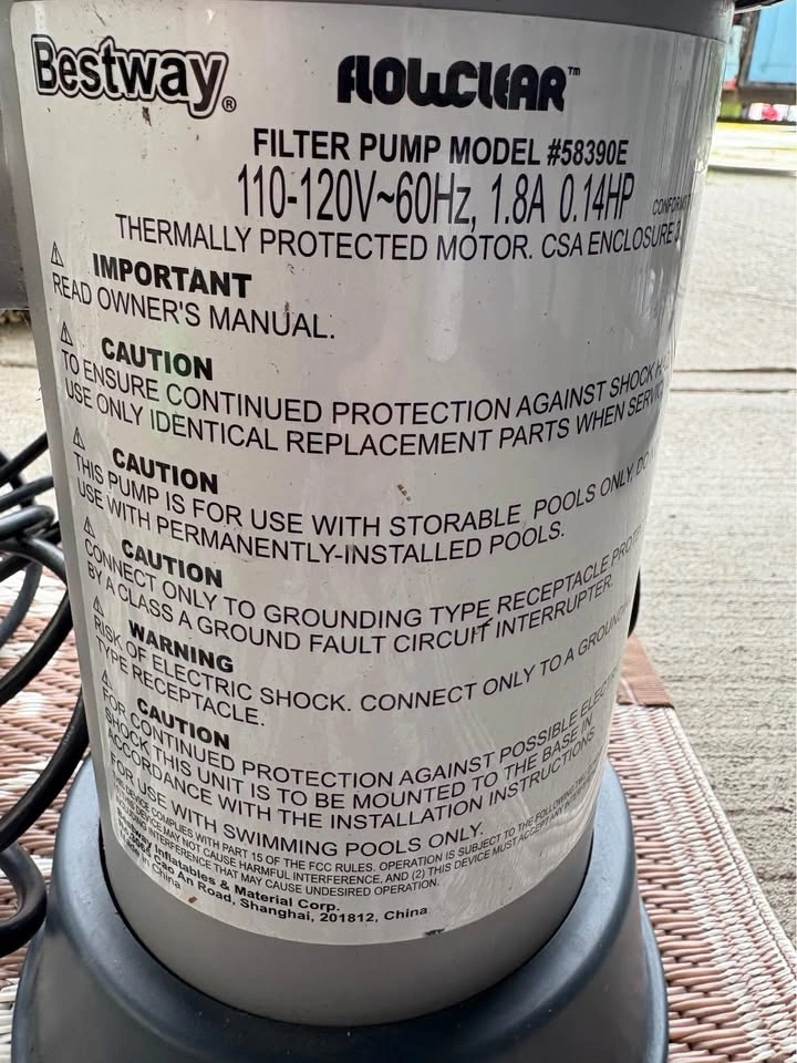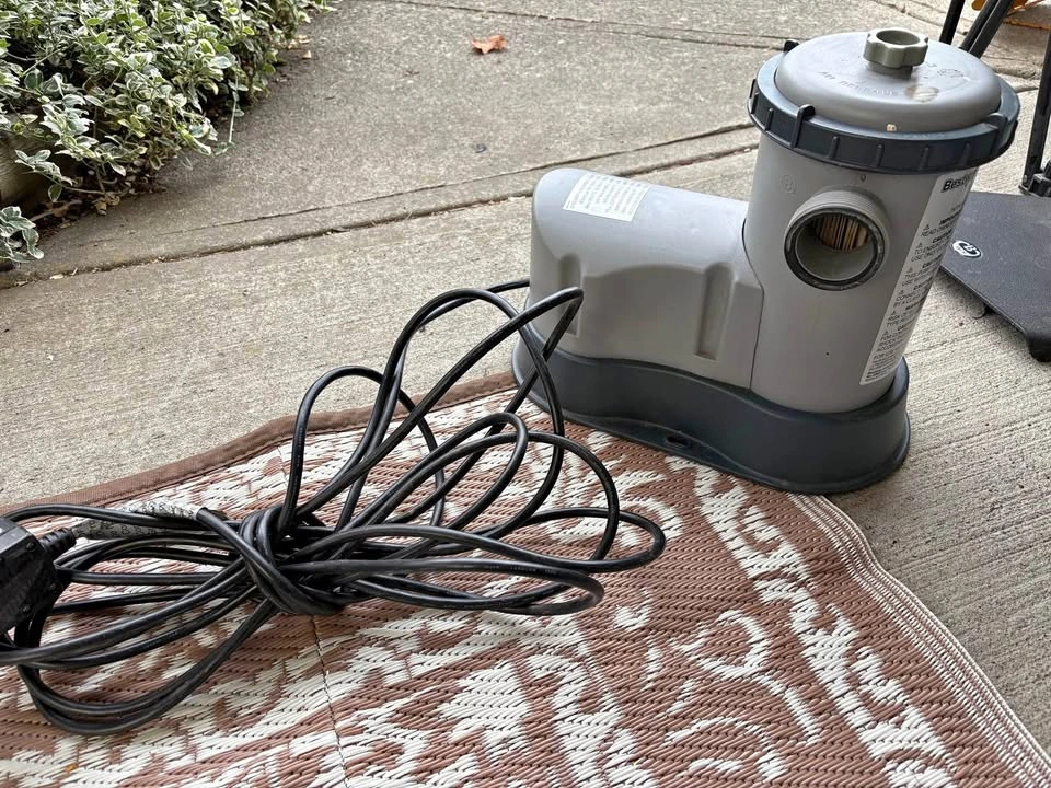 43Working pool pump and filter system. We bought a new pool that came with a different pump as our previous pool sprung a leak.