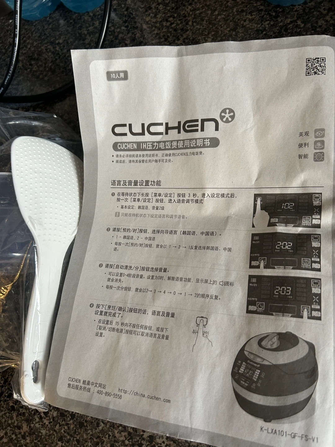New Premium CUCHEN Pressure Rice Cooker Authentically Made in Korea (K-LXA101-GF-FS-V1), Korean/Chinese Manual/Recipe, Rice Paddle, Measure Cup Included.