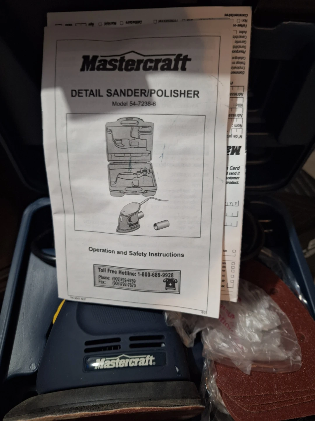 Selling a Mastercraft Detail Sander/Polisher, model 54-7238-6. It comes with its case and some sanding pads. Perfect for small projects and detail work!