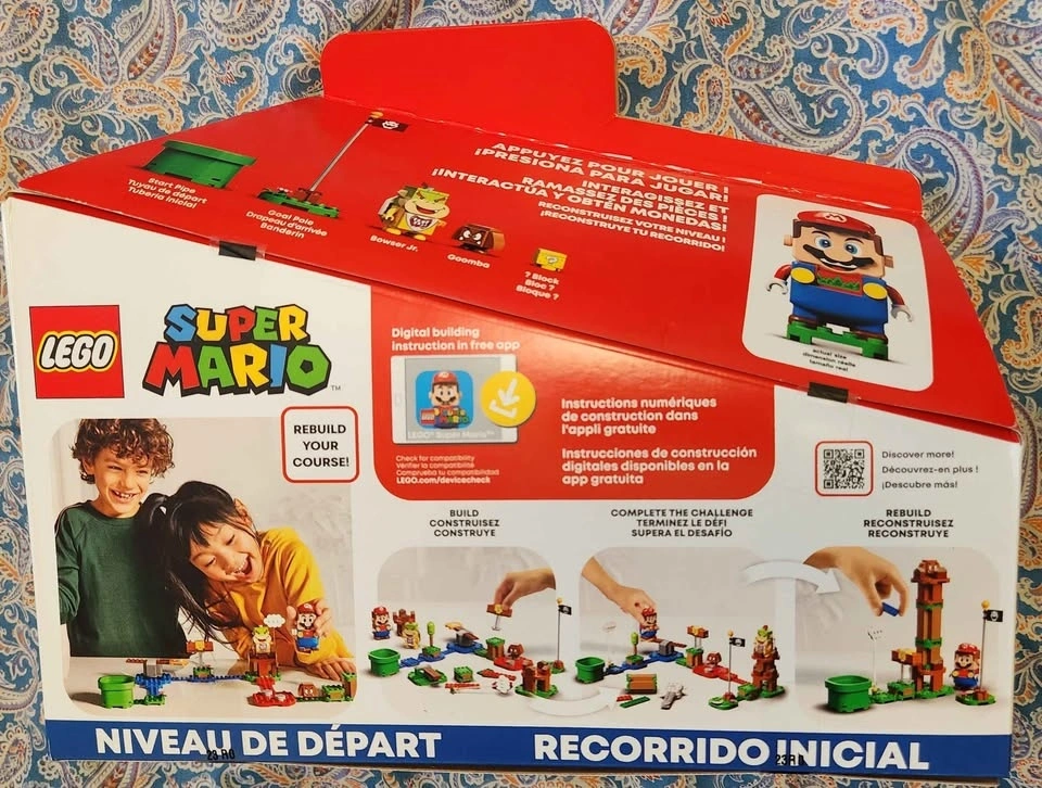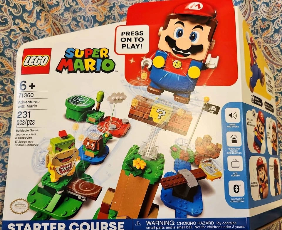 Includes 231 pieces with LEGO Mario figure complete with LCD screen and speaker for instant expressive responses. Also includes Mario themed course characters like Goomba and Bowser Jr, as well as building blocks to make your own course. Brand new, never opened box. Please check out my other listings!