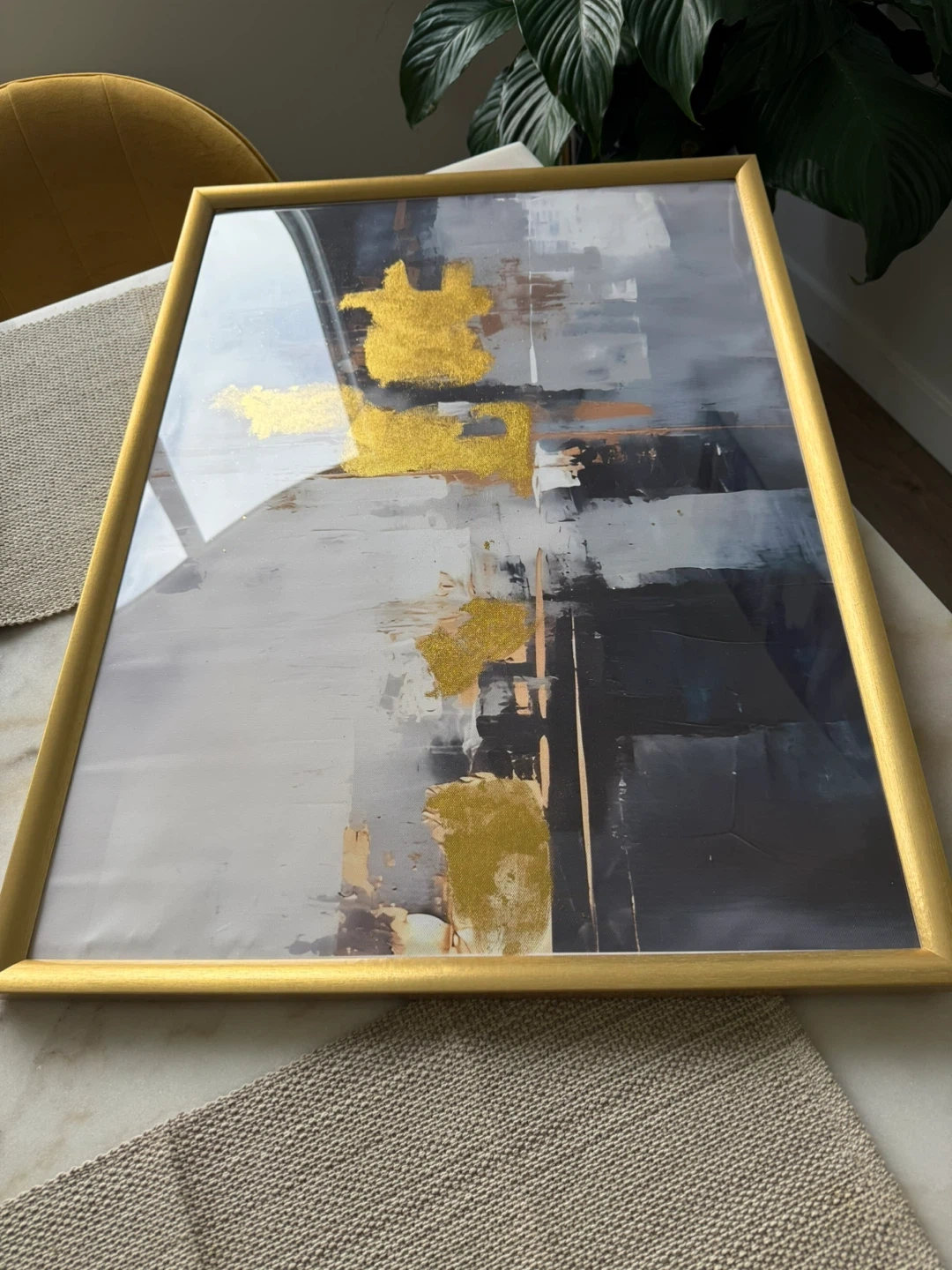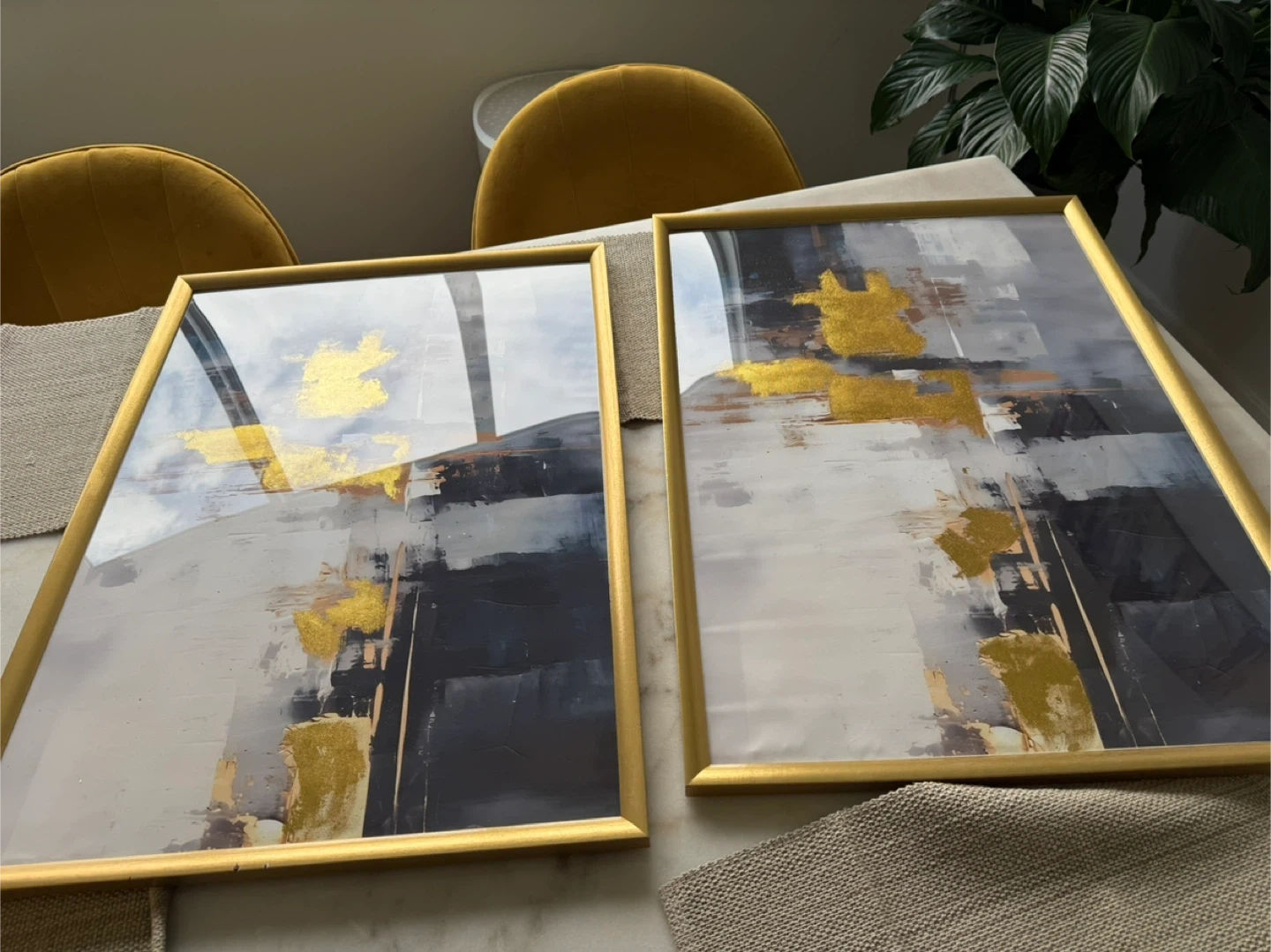 25Selling a set of two abstract art pieces with gold frames. They're in great condition and would look lovely in any room!