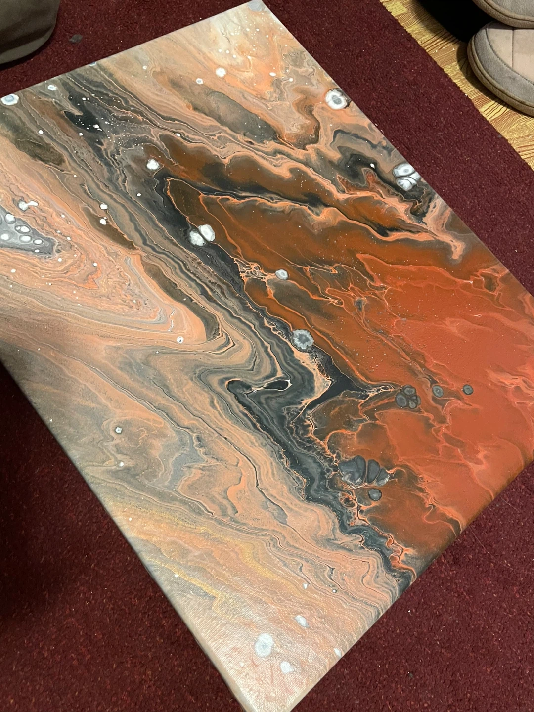 Unique fluid art painting. This piece adds a modern touch to any room. It's in great condition and ready to find a new home! Can be hung vertically or horizontally. 16x20