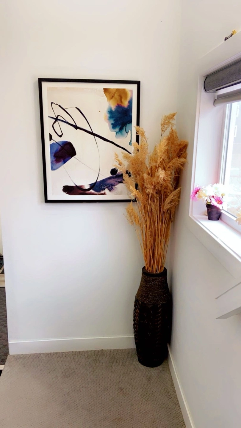 Beautiful abstract framed artwork. Beautiful vase with pampas grass Painting-$ 20 Vase with pampas grass-$35 OR Combo-$50 Moving sale no defects