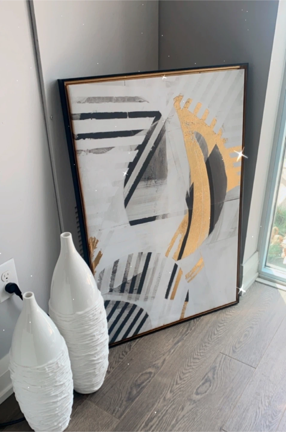 81I'm selling these abstract unique framed prints. They're perfect for adding a stylish and contemporary vibe to any room in your home. They reflect beautifully in the ☀️ Black painting is huge .. L56” x W40” $95 each. Pick up only. If you see this, it’s available