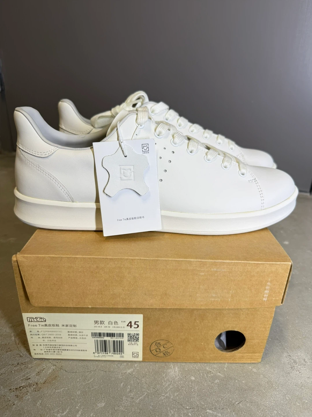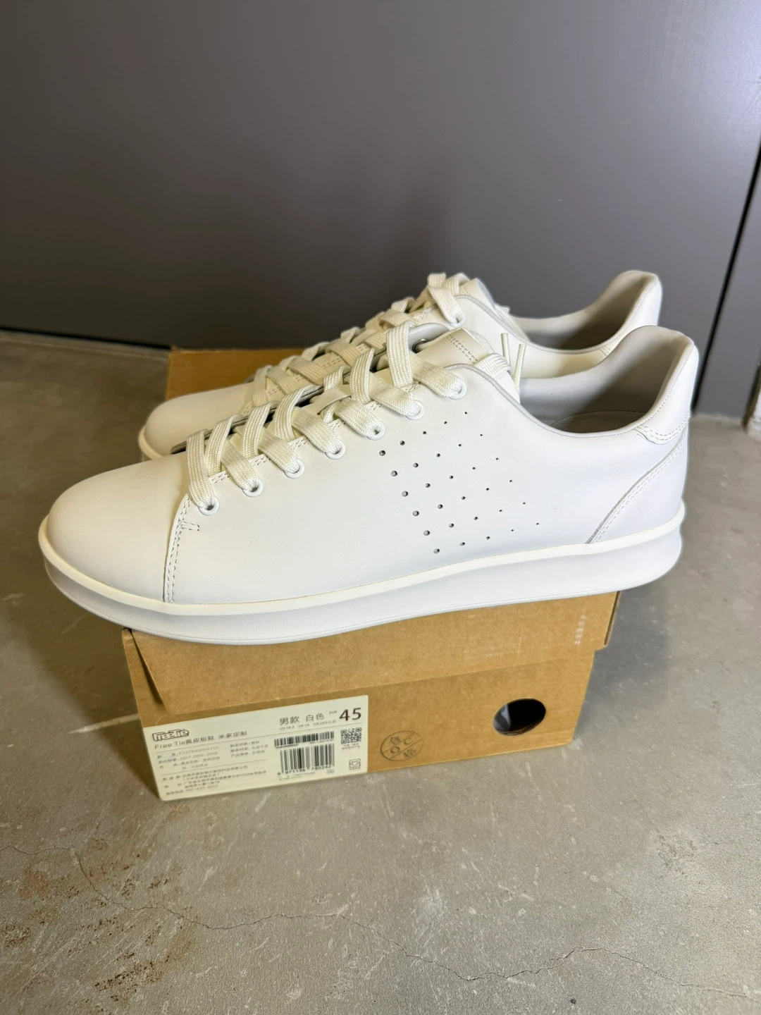 Brand new white leather sneakers for men from Free Tiu. These stylish kicks are size 45 (US11) and come in their original box. They're crafted for comfort and a classic look! NEW, Rare in the market.