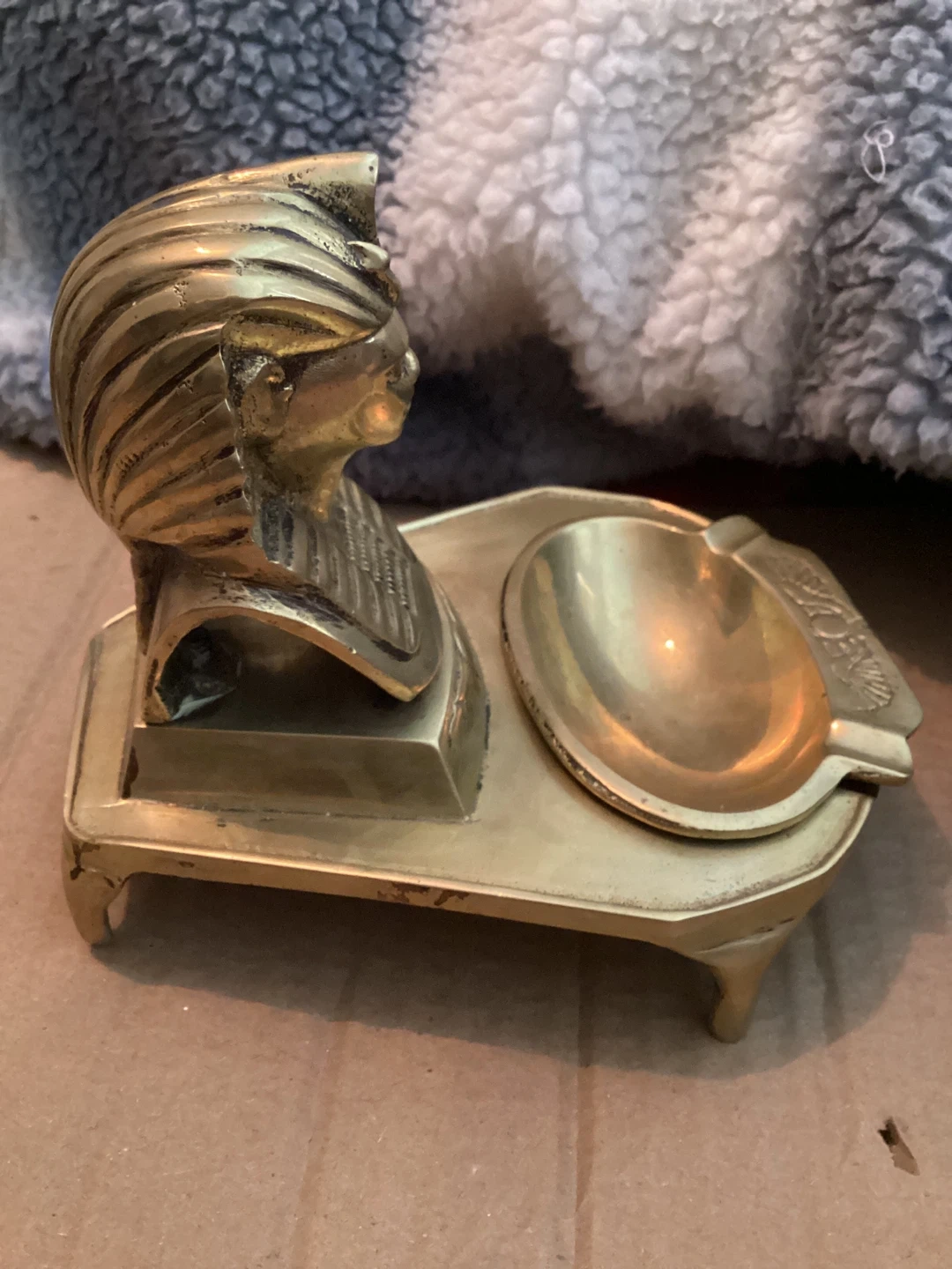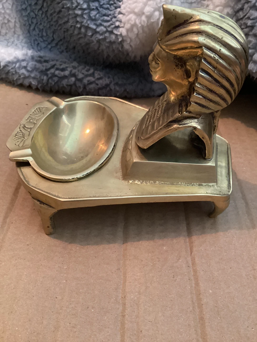 Solid brass ashtray featuring an Egyptian-style bust. It's a decorative piece for any tabletop. Brass material. Smoke and pet free home. Porch pick up in Binbrook
