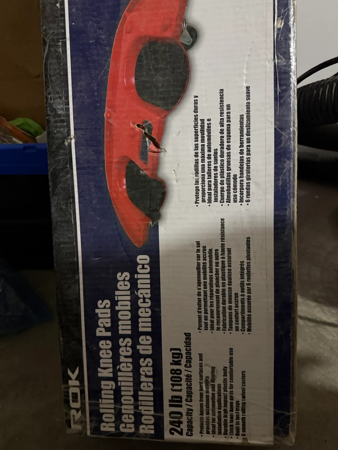 These ROK rolling knee pads are designed for use on smooth surfaces and provide maximum mobility. They feature a thick plastic base and 6 smooth rolling casters. Built-in trays for tools and hardware. Comfortable for mechanics and DIYers alike!