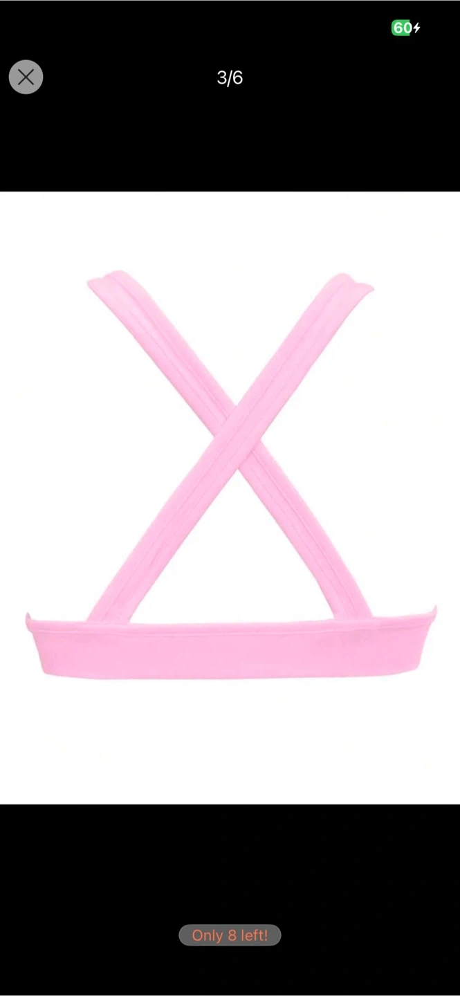This pink two-piece set includes a V-neck sports bra and matching leggings. It's made from a comfortable, stretchy fabric. Great for workouts or lounging! Size M for both.