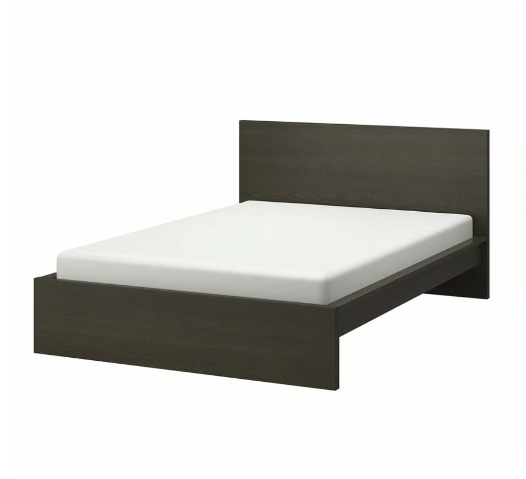 A sturdy bed frame. Simple design, with a headboard. The bed frame provides a supportive structure for a good night's sleep, creating a haven of relaxation.