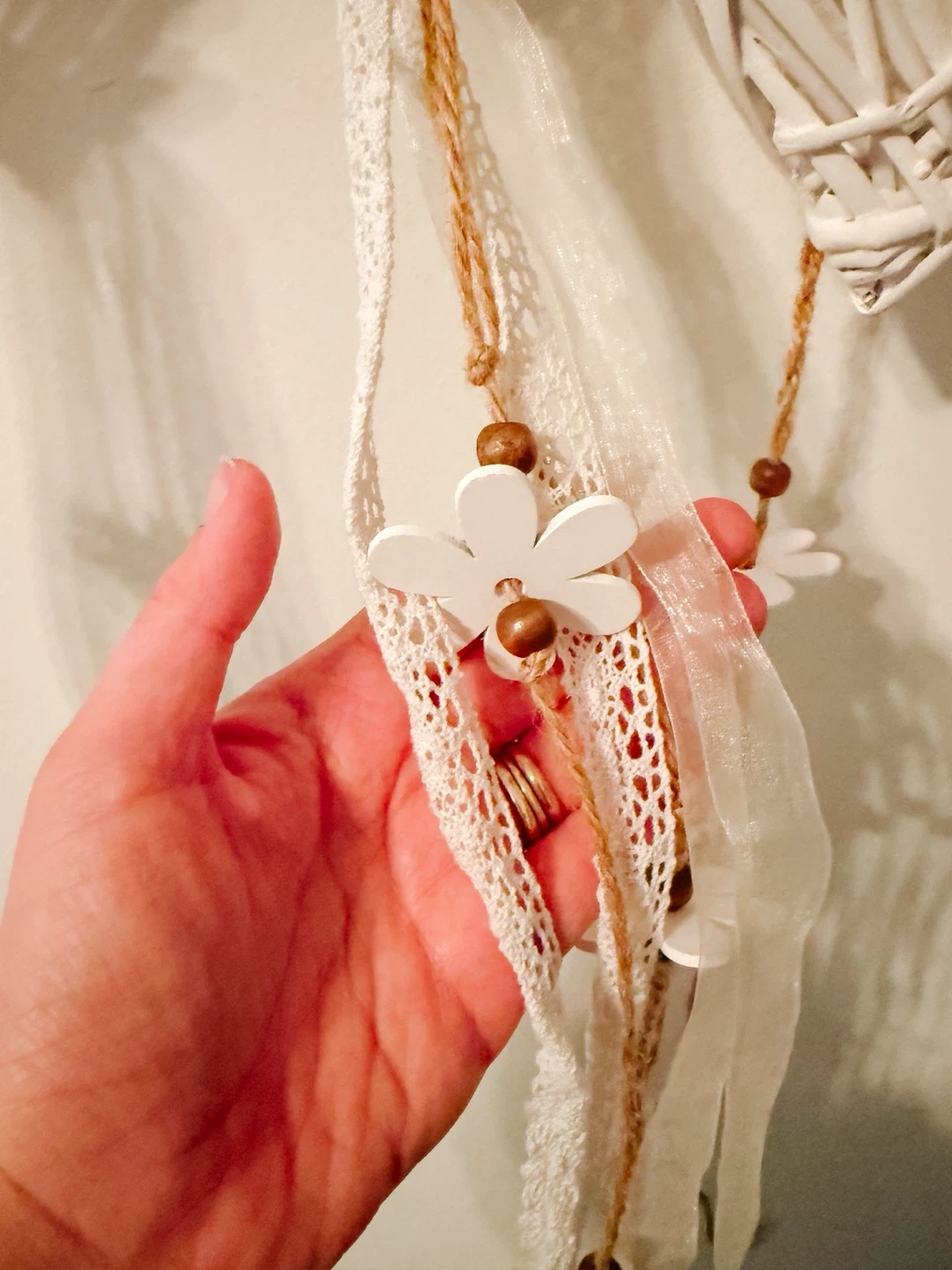 White Wicker Heart Garland with Flower and Bead Dangles