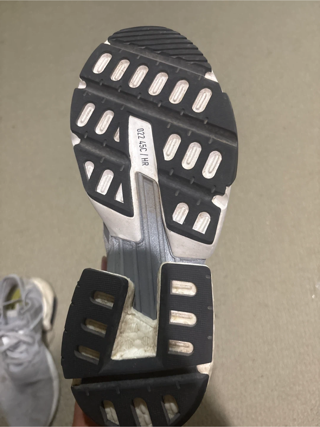 These are a pair of grey Adidas running shoes. They feature a mesh upper and a cushioned sole. Good for everyday wear or light athletic activities.