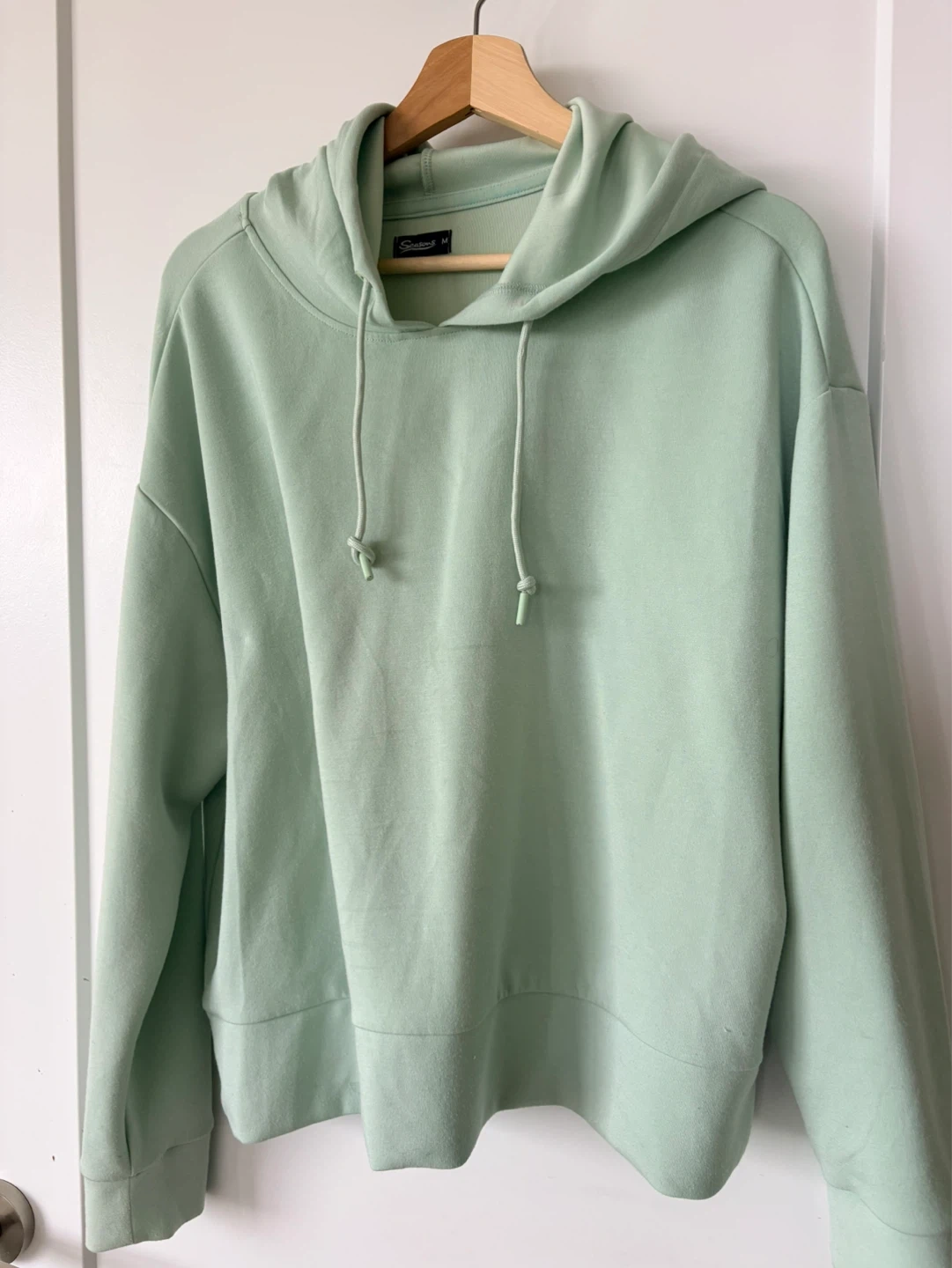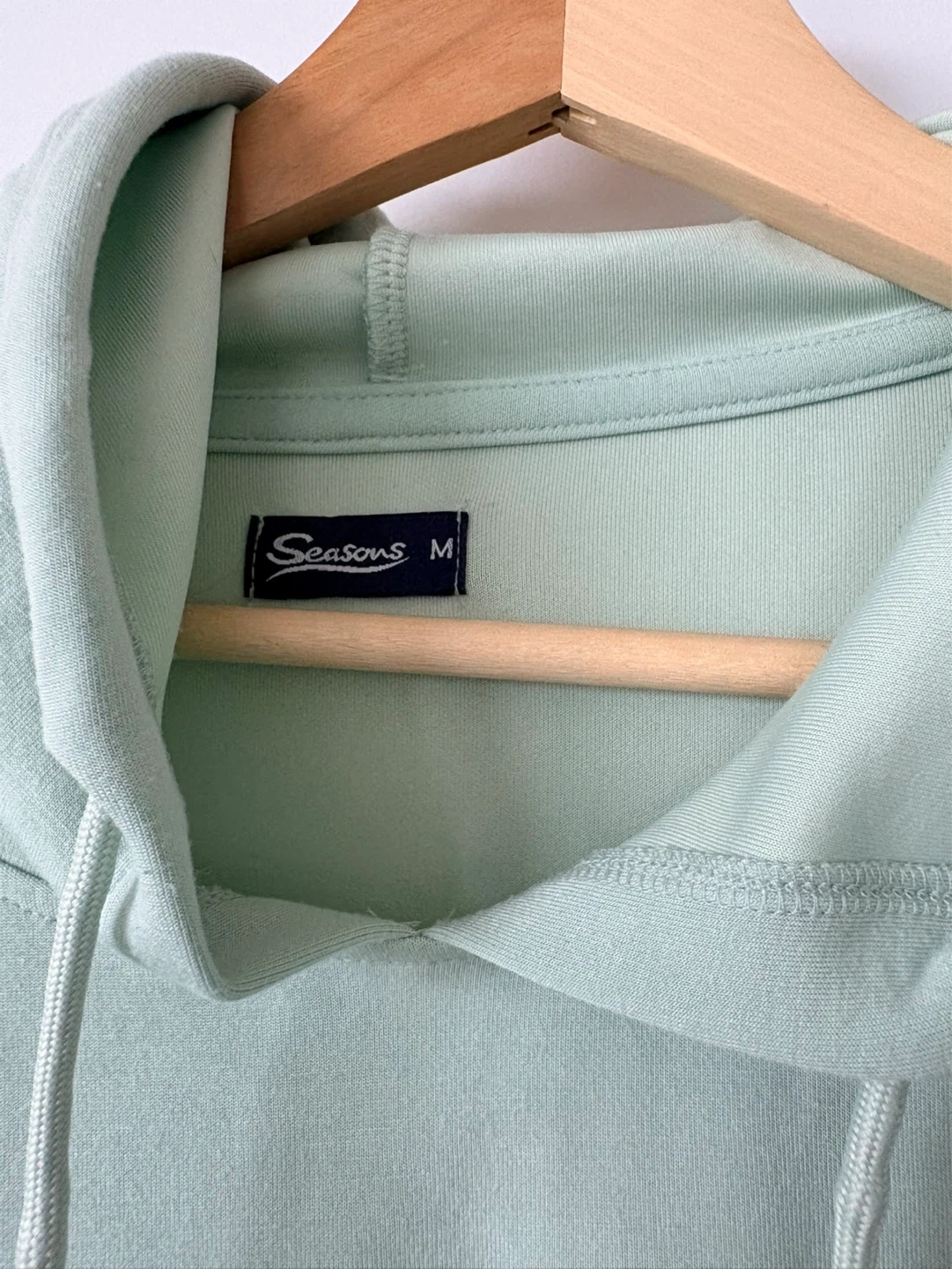This Seasons hoodie is a comfortable light green colour and size medium. It's made of soft material, perfect for casual wear. A great staple for any wardrobe!