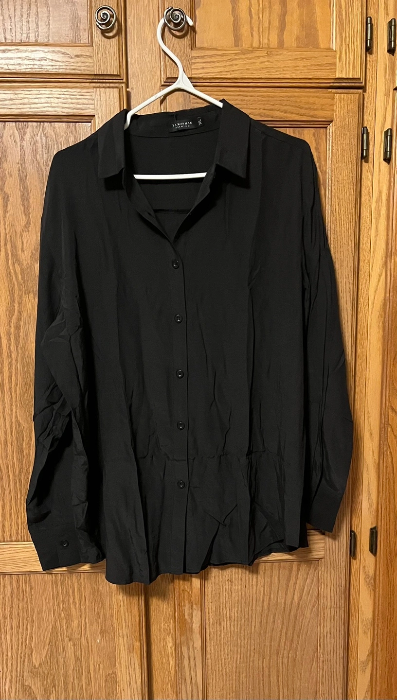 YAMANMAN Premium black blouse in size XL. The material is 63% rayon cotton and 37% polyester. Brand new tag on.