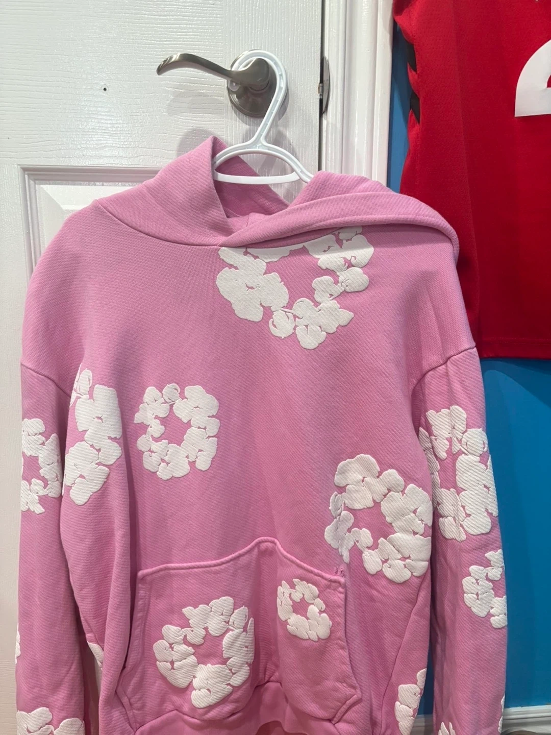 Denim Tears Pink Hoodie with White Floral Appliqué - Size M