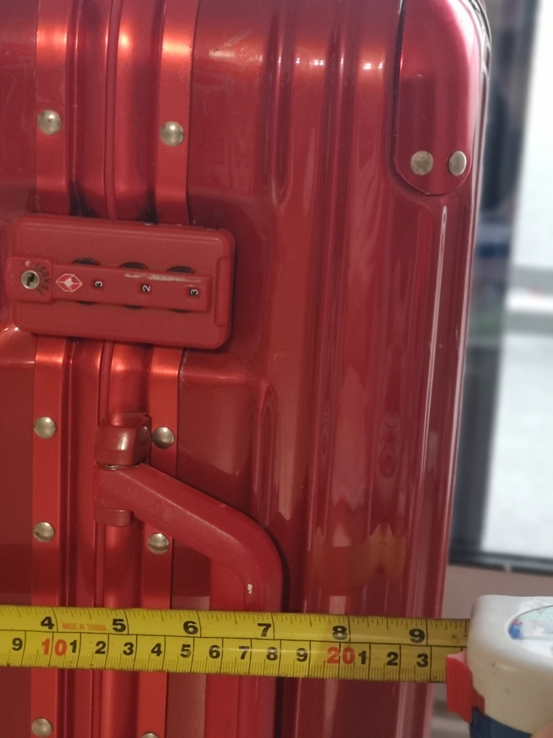 Selling a trendy red carry-on suitcase! It's approximately 21 inches in height. 39W 23D 53H in CM appropriately. Cool color interior with awesome bags for holding small stuffs. Good condition. No issue.