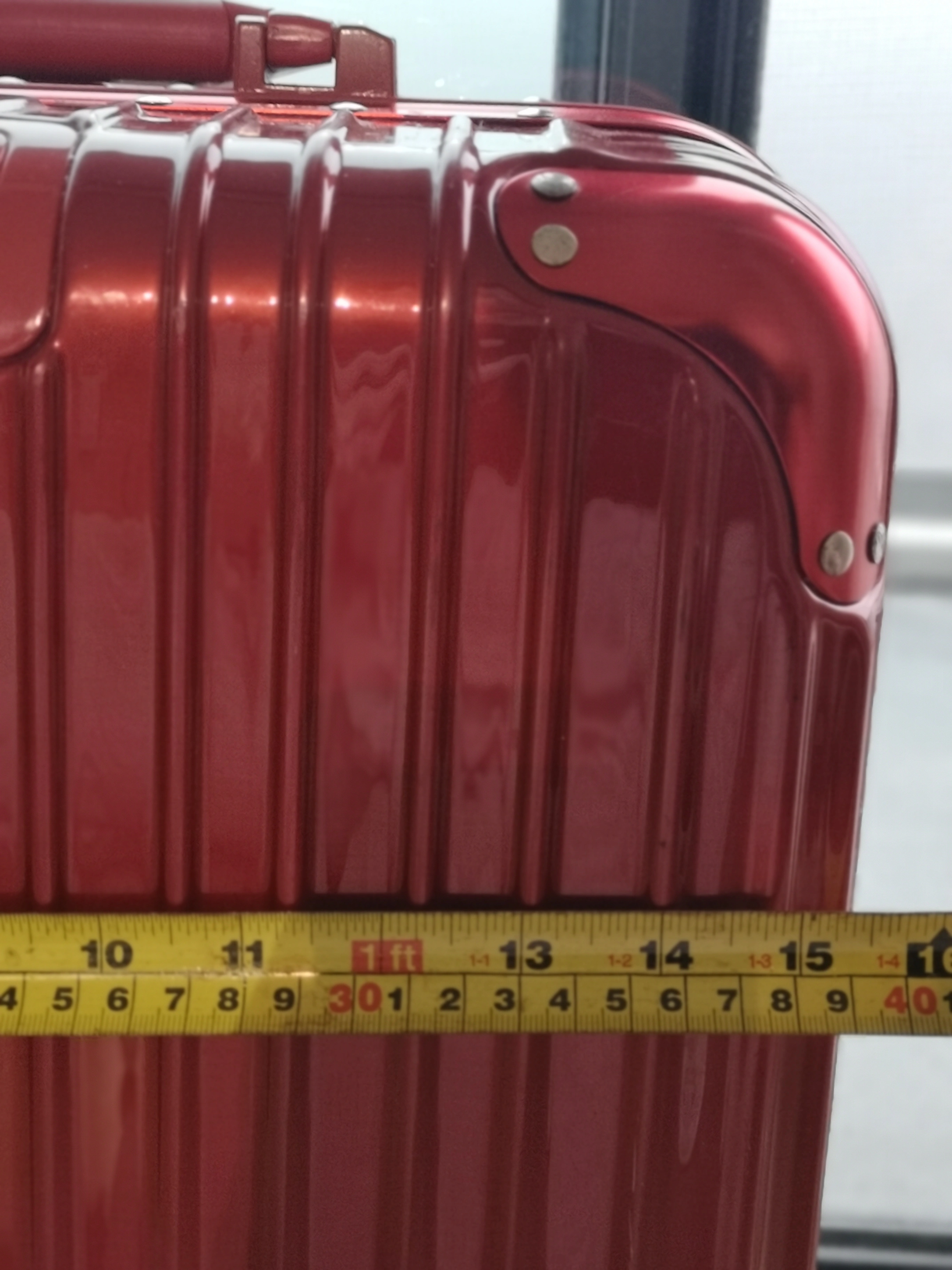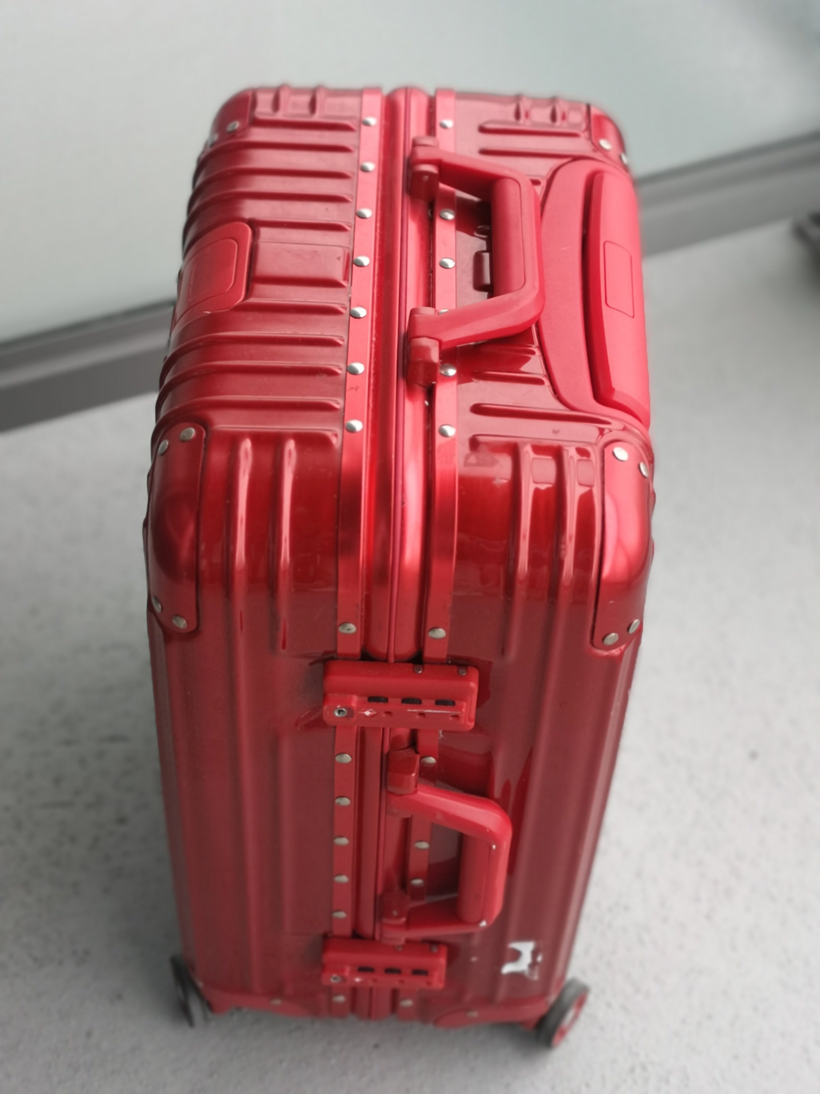 Selling a trendy red carry-on suitcase! It's approximately 21 inches in height. 39W 23D 53H in CM appropriately. Cool color interior with awesome bags for holding small stuffs. Good condition. No issue.